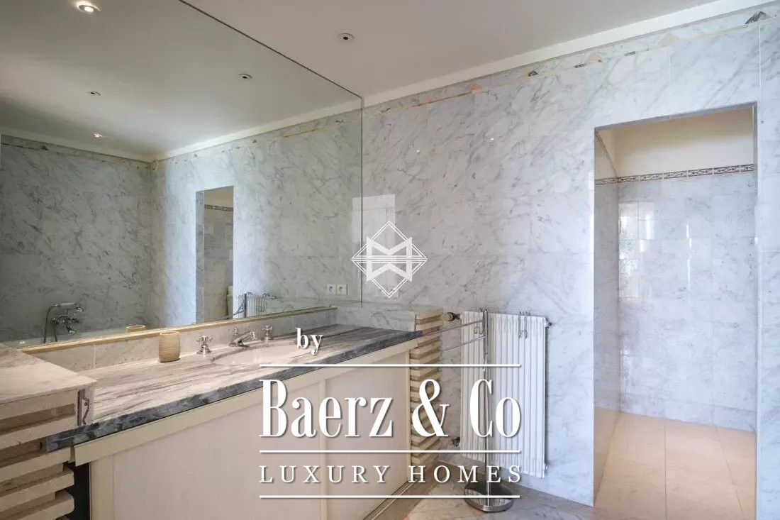 Royale leefruimtes ontvouwen zich over een dubbele woonkamer en eetkamer, direct grenzend aan een volledig uitgeruste keuken en allen uitkijkend op het rustgevende blauw van de Middellandse Zee. De villa beschikt over vijf slaapkamers, waaronder één die momenteel als derde salon in gebruik is, en drie badkamers. Alles is doordacht voor discretie en comfort, van vloerverwarming en radiatoren tot elektrische rolluiken, een open haard en een geavanceerd alarmsysteem. Een infinity pool, zonovergoten solarium en terrassen bieden ongedwongen buitenleven op het perceel van 1.838 m².