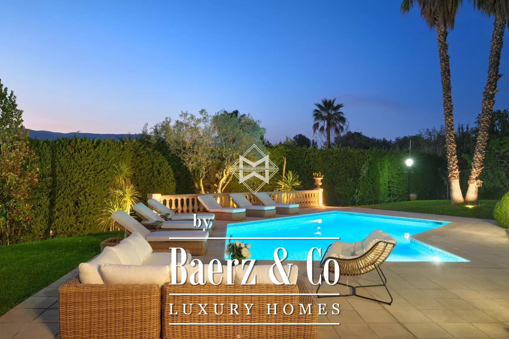 Het perceel van 1.540 m² ontvouwt zich in groene terrassen en mondt uit in een elegante zwembadpartij. De zuidelijke zon en het rustige ritme van het leven in Mougins zijn overal voelbaar, waardoor een sfeervolle plek ontstaat voor ontspanning en een stille verbondenheid met de omgeving. Deze luxe villa te koop in Mougins belichaamt de subtiele verfijning waar internationale kopers naar op zoek zijn.