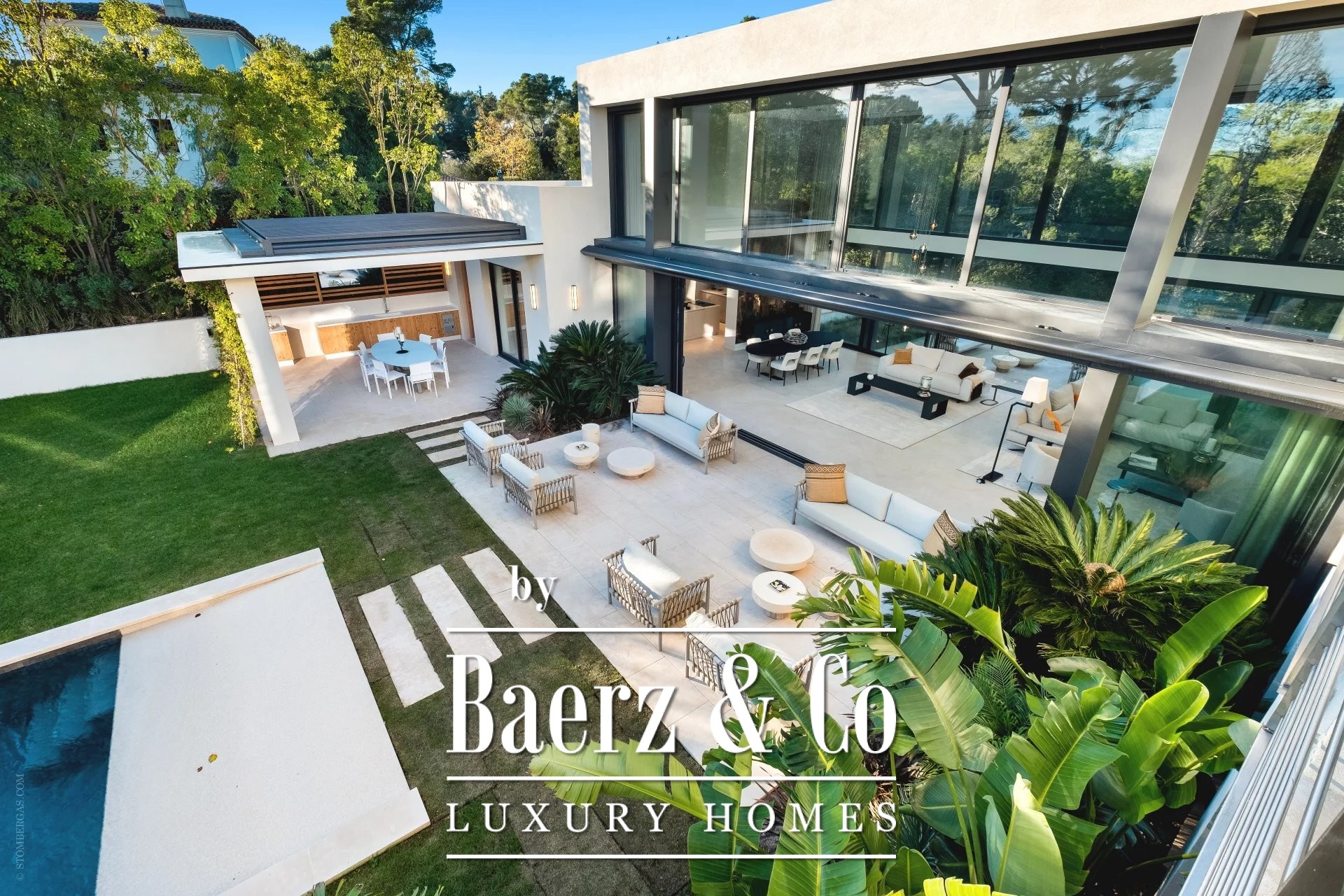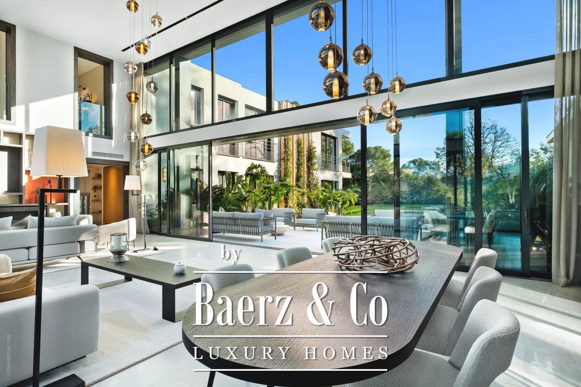 De eigentijdse villa in Mougins kenmerkt zich door een indrukwekkend samenspel van ruimte en licht, gelegen in een van de meest exclusieve beveiligde domeinen van de regio. Deze nieuw gebouwde residentie biedt 700 m² verfijnd wooncomfort op een gelijkvloers perceel van 2.700 m², gericht op rustgevende vergezichten over het bos en centraal gelegen rondom een strakke zwembadpartij.