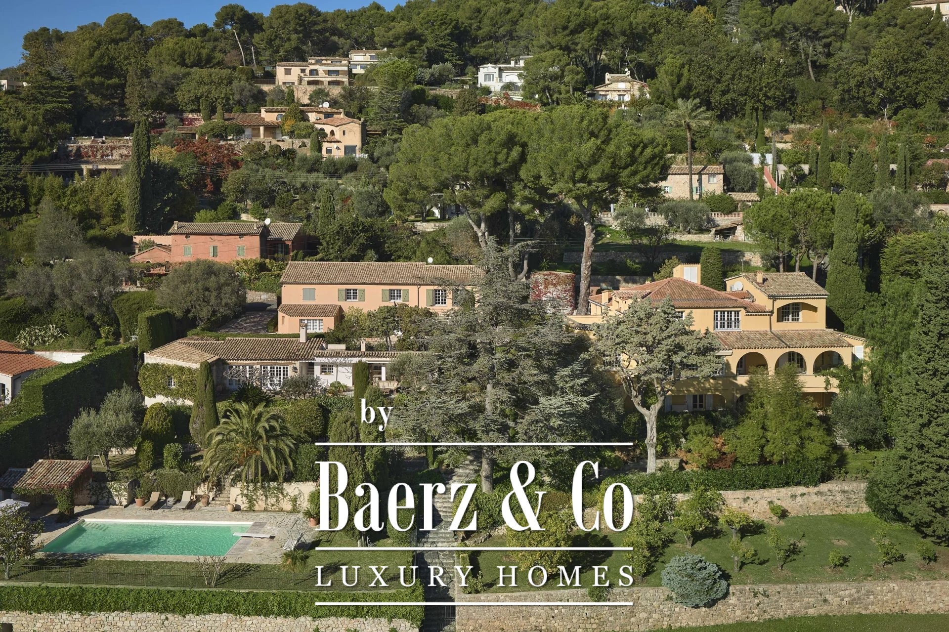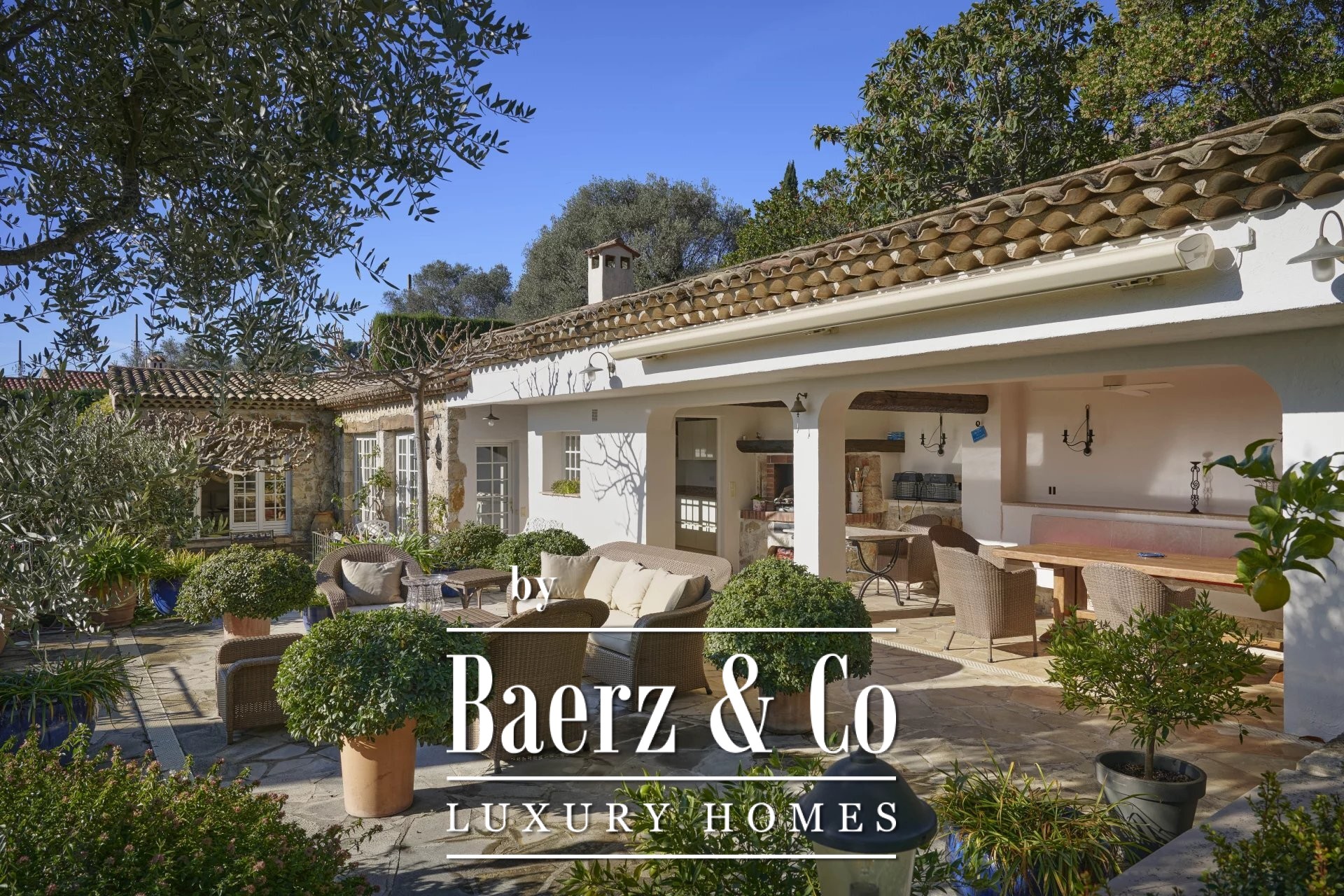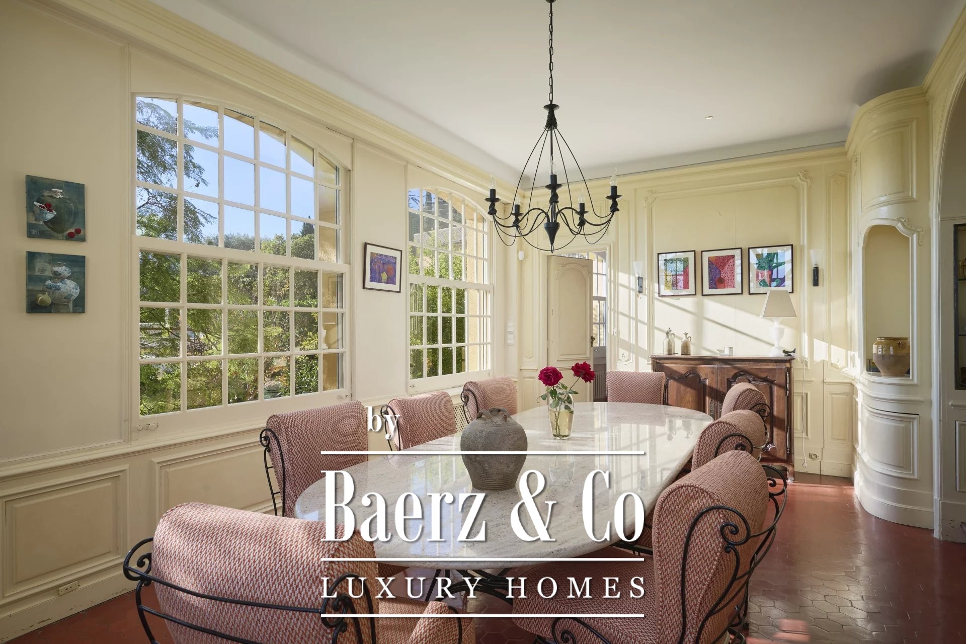 Villa Mougins weerspiegelt het erfgoed van de Franse Rivièra op een perceel van 10.000 m² aangelegde tuinen, en presenteert een landgoed waar tijdloze charme en hedendaags comfort samenkomen. Deze villa in Mougins is ontstaan als jasmijnboerderij in de jaren 1920 en gegroeid tot een harmonieus geheel met 830 m² woonoppervlak, verdeeld over stijlvol verbonden gebouwen. Vanaf elke terras en uit iedere tuin strekken panoramische vergezichten zich uit over de heuvels richting de Middellandse Zee, wat het dagelijks leven een gevoel van ruimte en rust geeft.