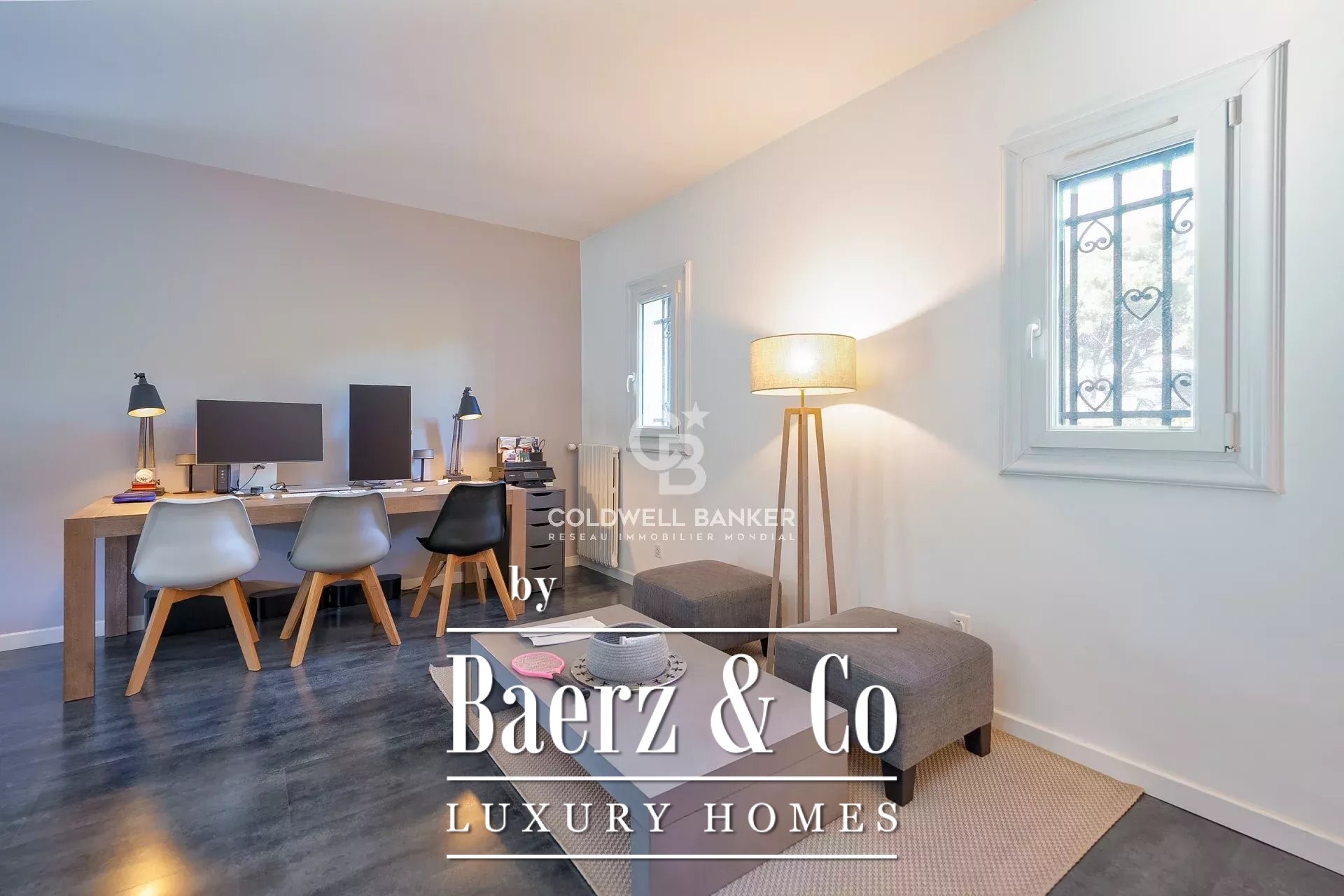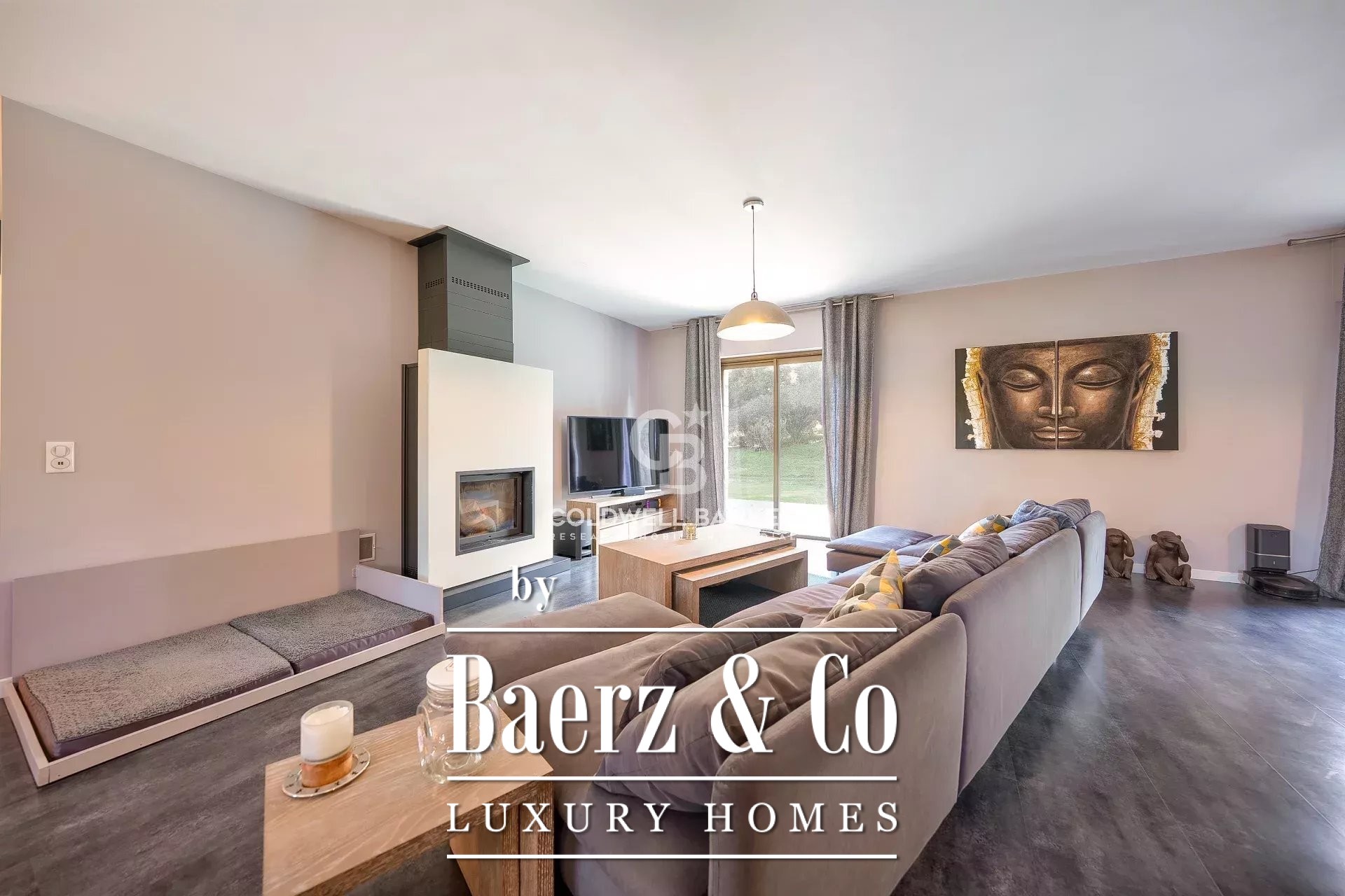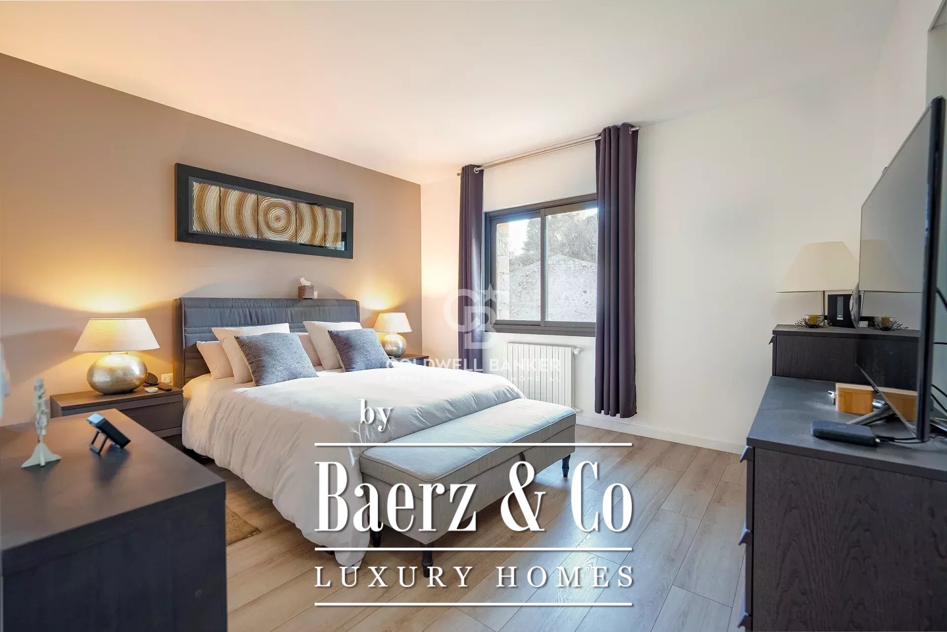 Details zoals vloerverwarming, een open haard, schuiframen, alarmsysteem en elektrische poort versterken het gevoel van veiligheid en hedendaags comfort, terwijl natuurlijke waterbronnen en een jeu-de-boulesbaan verwijzen naar de tijdloze Provençaalse sfeer. Deze villa te koop in Mougins combineert op verfijnde wijze authenticiteit, ruimte en de belofte van discretie in een select afgesloten domein.