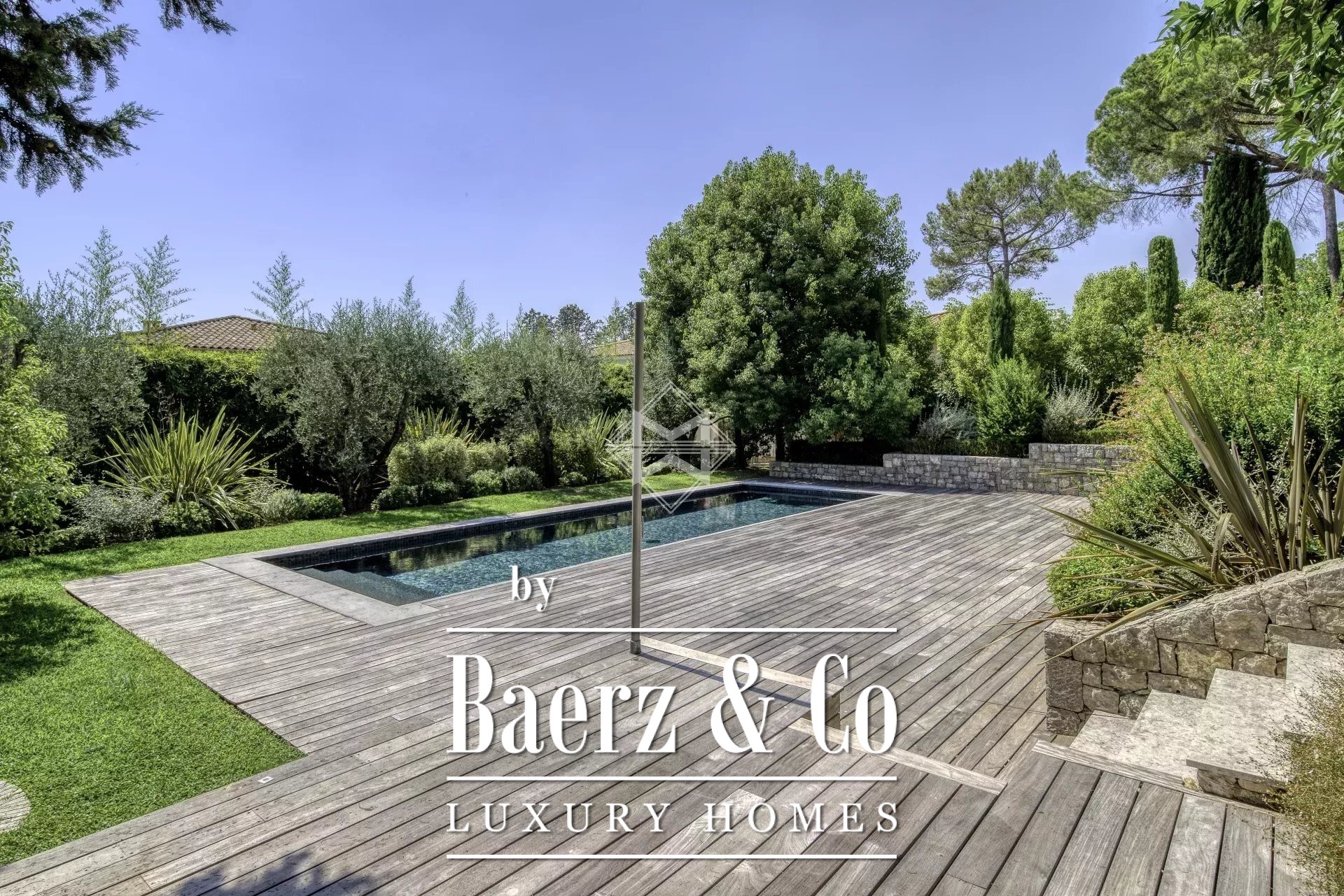 Villa Mougins is een eigentijdse Provençaalse villa, discreet gelegen in een besloten domein omgeven door volwassen groen en op slechts enkele minuten van lokale voorzieningen, de golfbaan en de internationale Mougins School. Deze villa biedt 250 m² aan woonruimte, waar strak design en royale volumes samenkomen tot een gevoel van openheid en natuurlijk licht in elke ruimte.