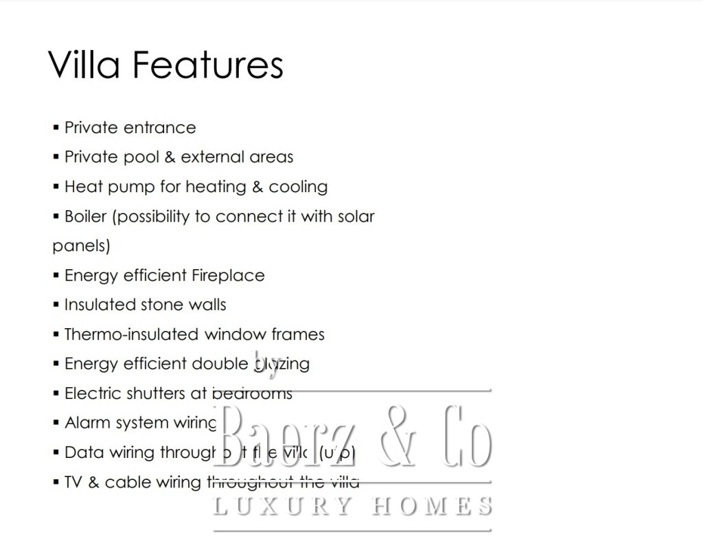 Energieklasse A en voorzieningen als dubbele beglazing, beveiligingssystemen en fan coil-verwarming weerspiegelen een duurzame en efficiënte benadering. Voor vroege kopers bestaat de unieke mogelijkheid om te participeren in het ontwerp van het interieur, waarbij materialen en indeling naar eigen smaak te bepalen zijn. Deze villa nabij Nafplio vindt de balans tussen tijdloze materialen en eigentijds wonen en vormt een uitnodiging tot mediterrane rust.