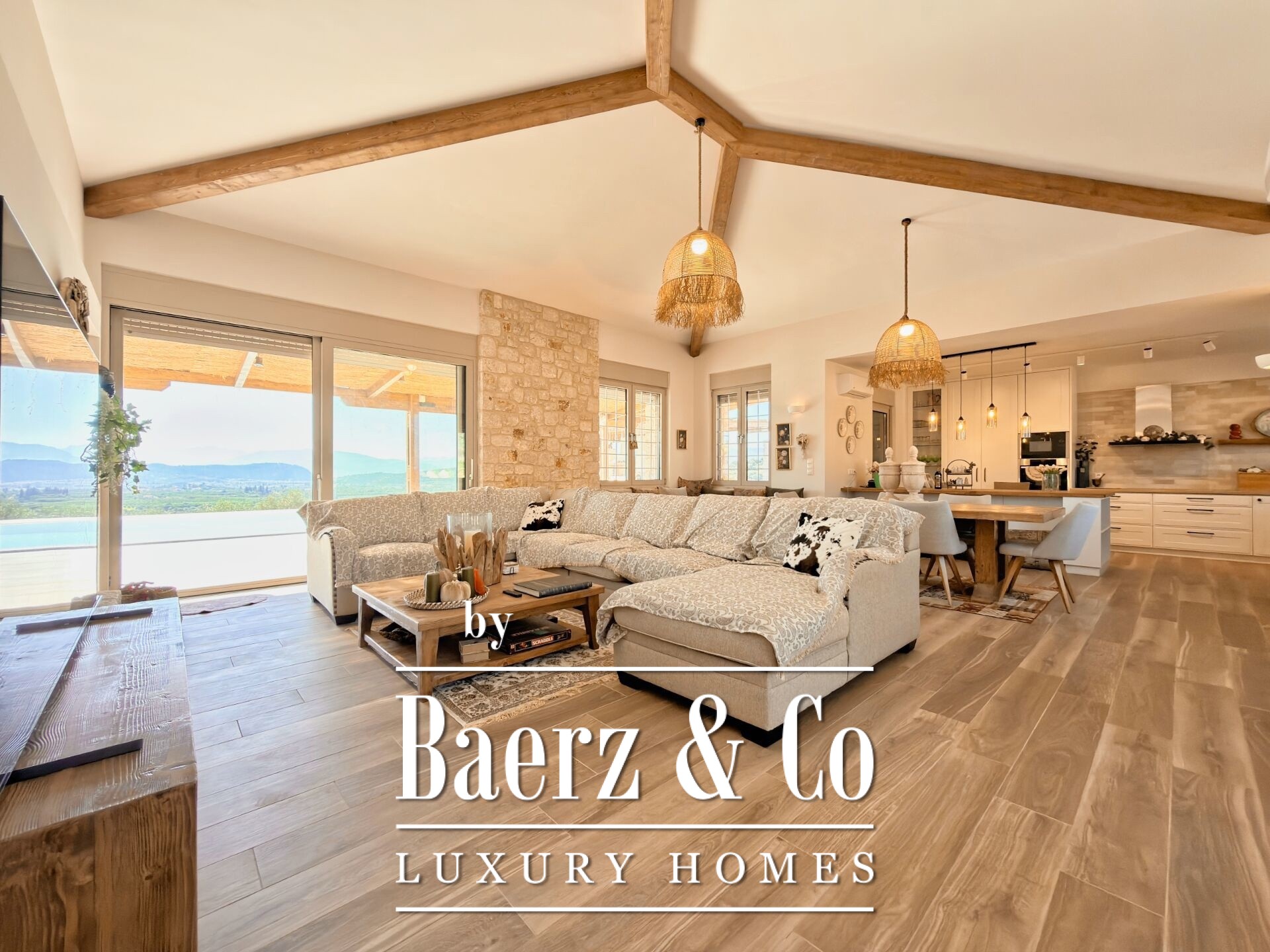 Luxe villa Nafplio biedt een zeldzame kans om te wonen in een eigentijdse residentie op een van de meest rustige en visueel indrukwekkende locaties van Griekenland. Deze gelijkvloerse woning van 232 m² bevindt zich op een royaal perceel van 5.255 m², waar het panoramisch uitzicht over Nafplio en de westelijke oriëntatie het natuurlijke licht diep tot in elke ruimte laat doordringen. Zo ontstaat een openheid die naadloos aansluit bij het omliggende landschap.