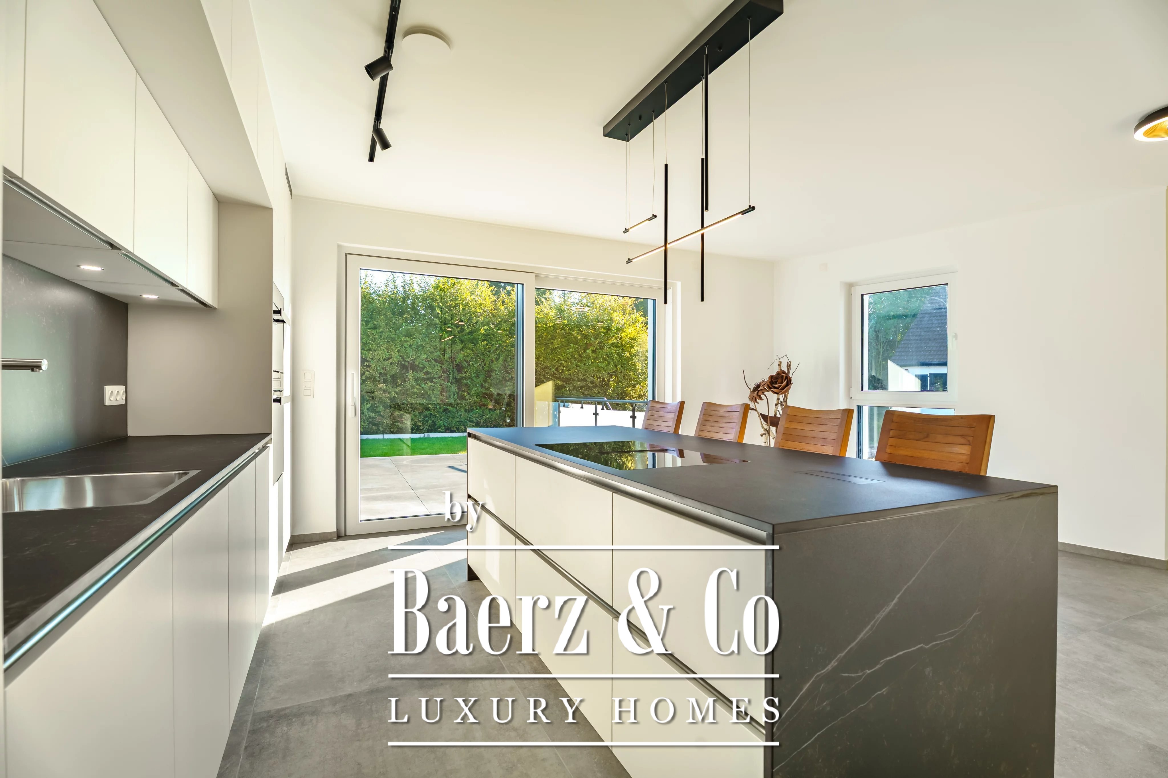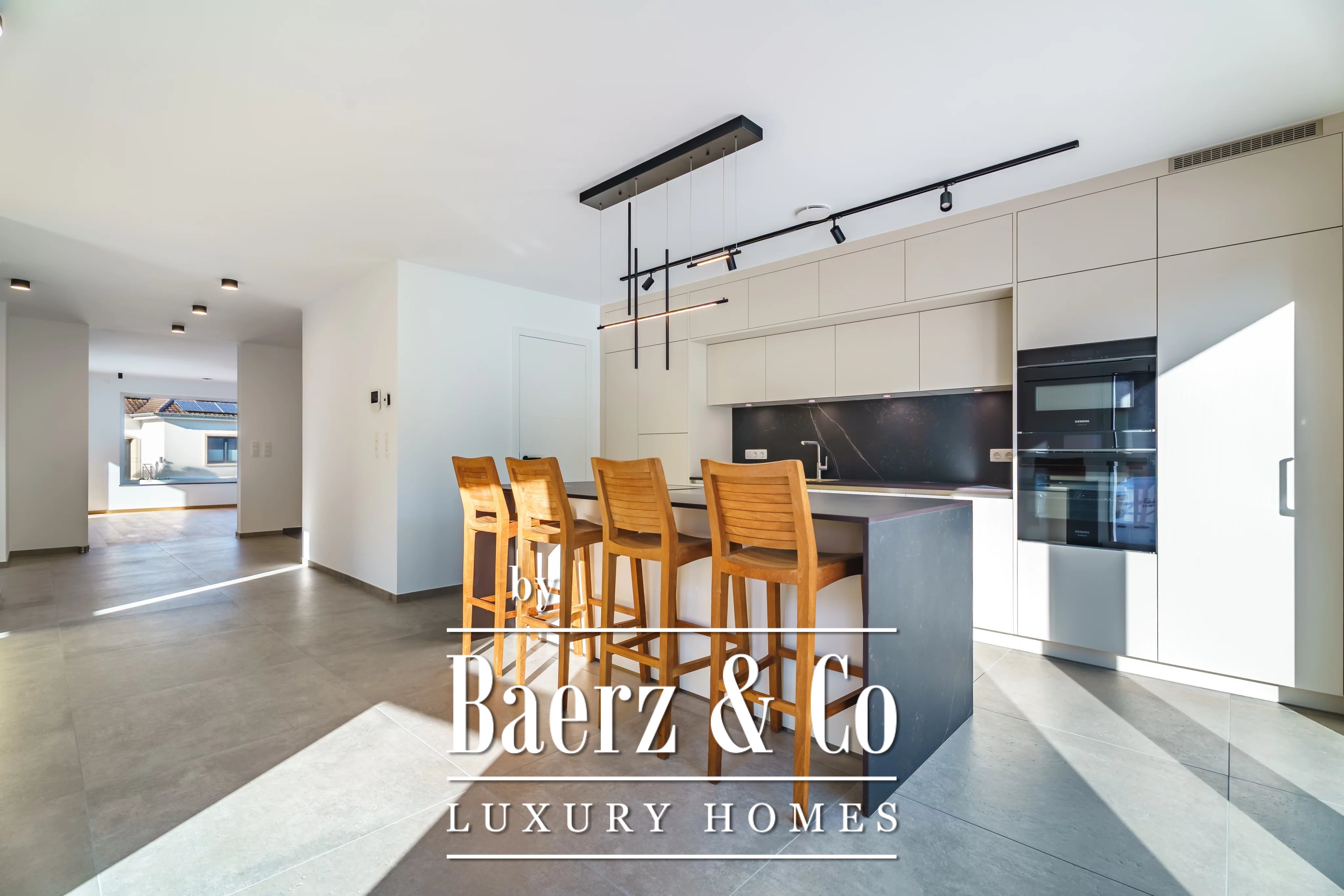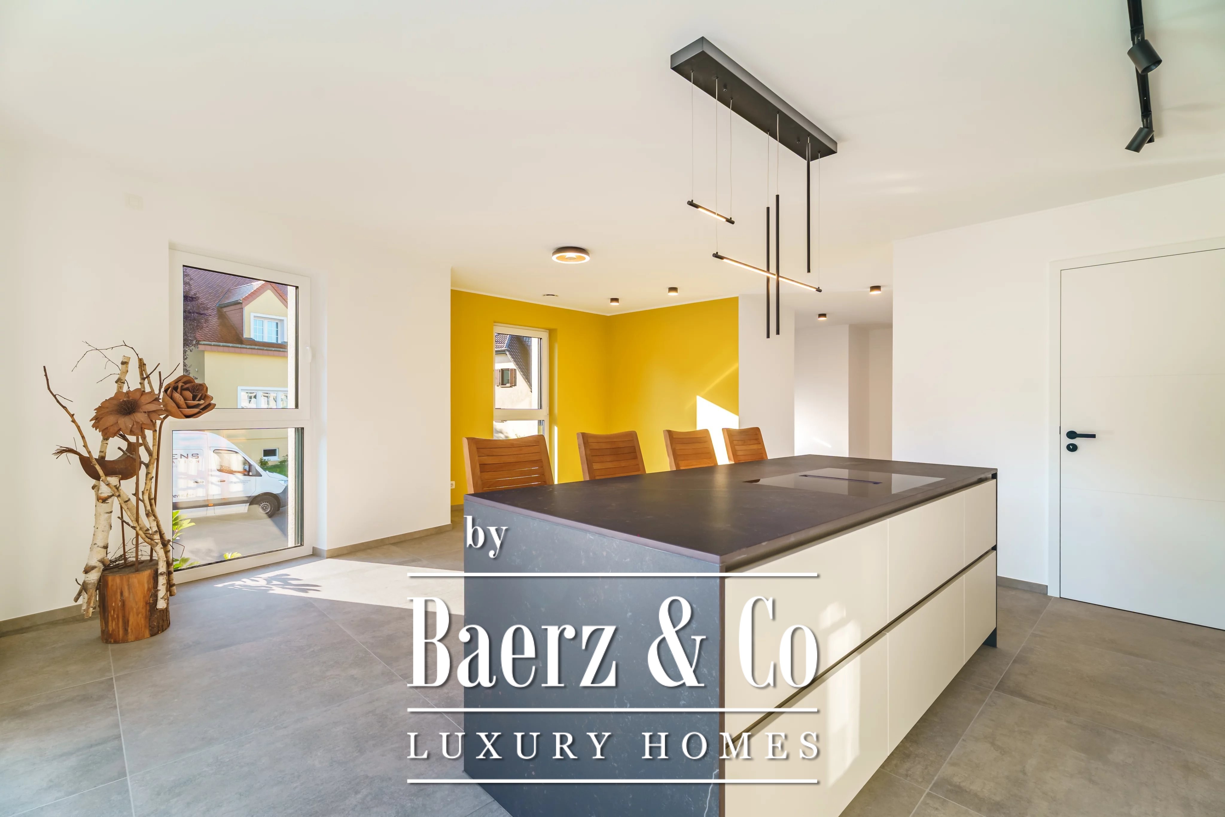 Wij bieden u een nieuwe eengezinswoning aan, vrij aan drie zijden, met een bewoonbare oppervlakte van 193 m² (exclusief garages), gebouwd op 3,79 are grond, gelegen aan An der Laangwiss 5 in Niederanven, gebouwd in 2025 door WANSART CONSTRUCTION.