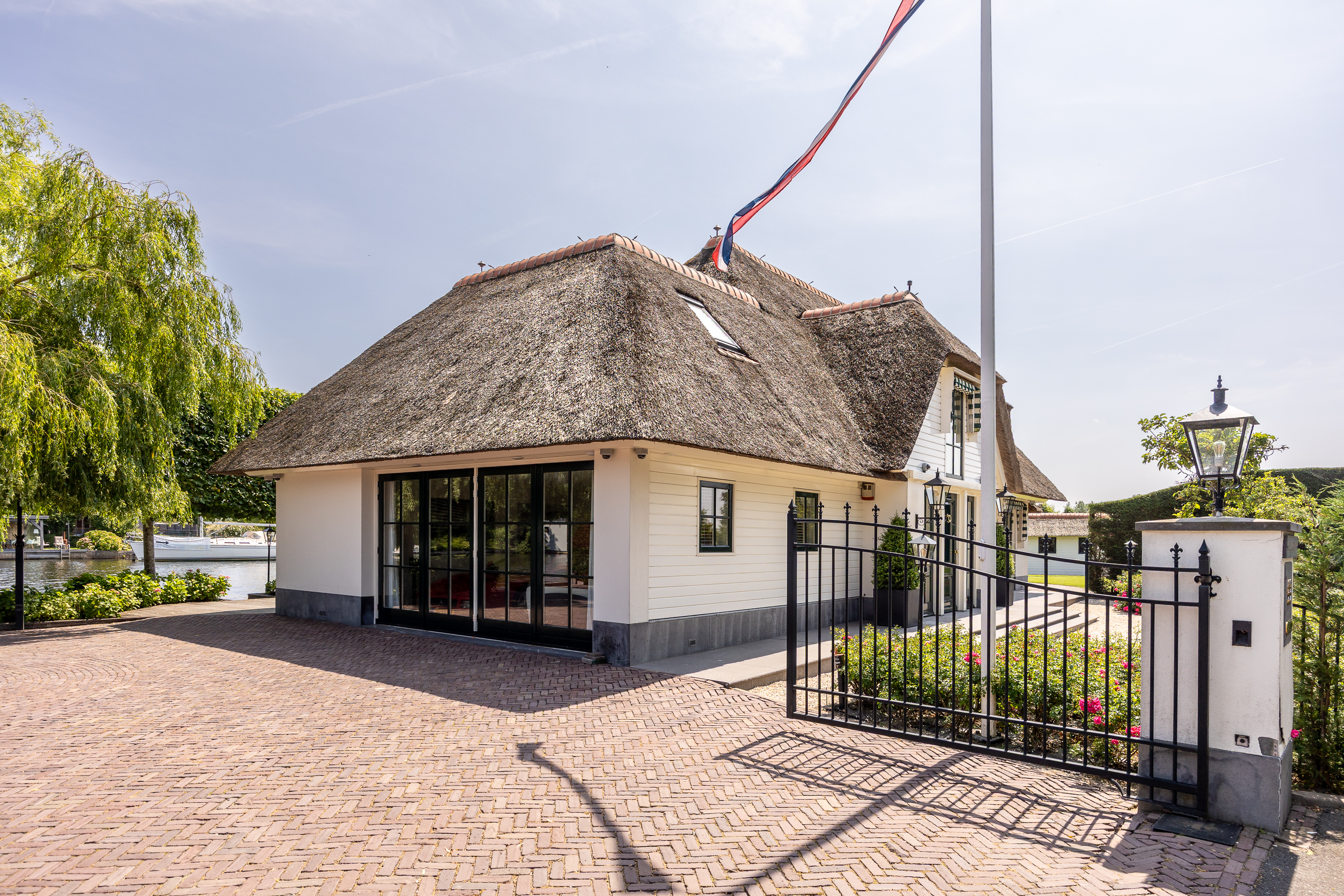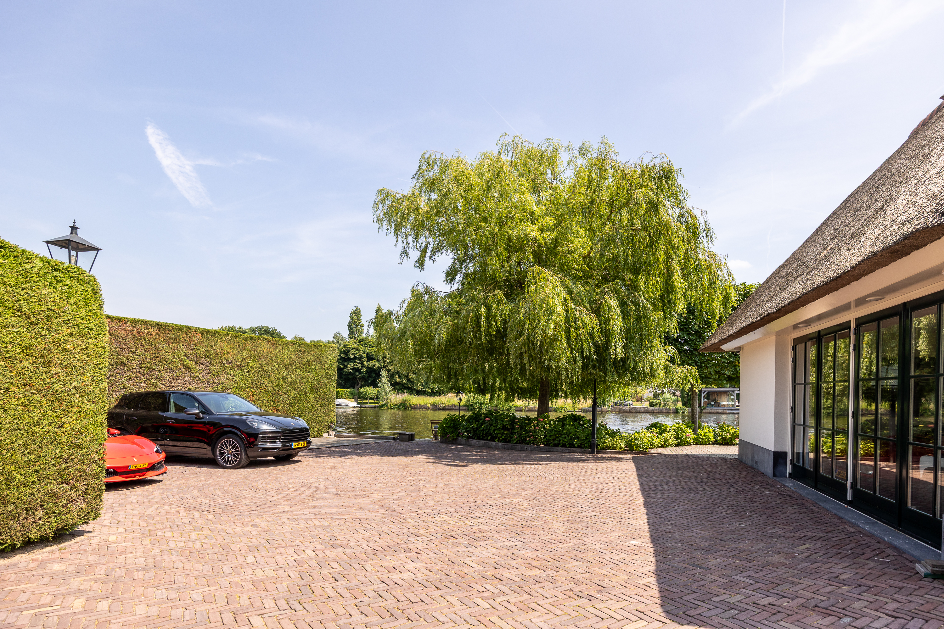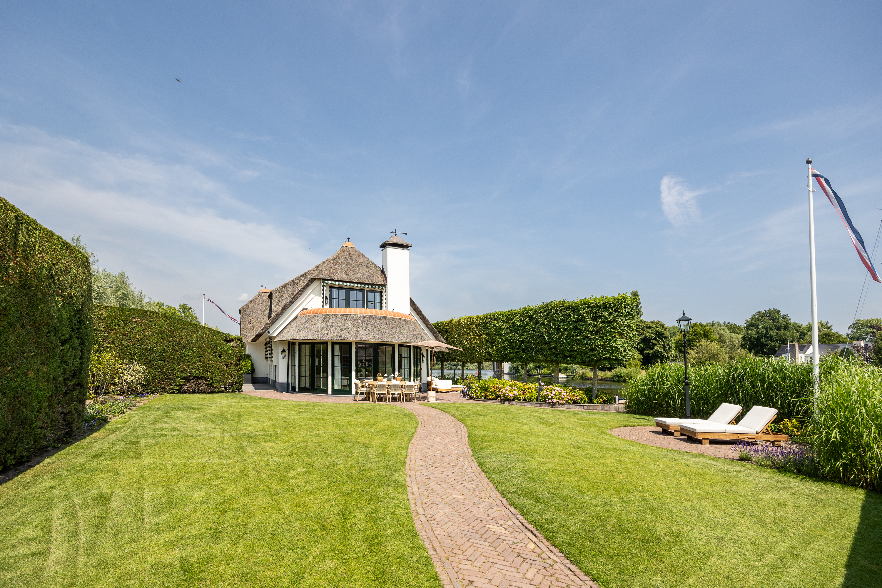 Wanneer je de hectiek van de grote stad hebt verlaten en via een oer Hollandse landweg al slingerend langs de prachtige rivier “de Vecht” de woning benaderd valt de rust over je heen als een warme deken. De statige, automatische poort opent zich, je parkeert je auto op de ruime parking en je zet je auto uit. Je bent thuis.