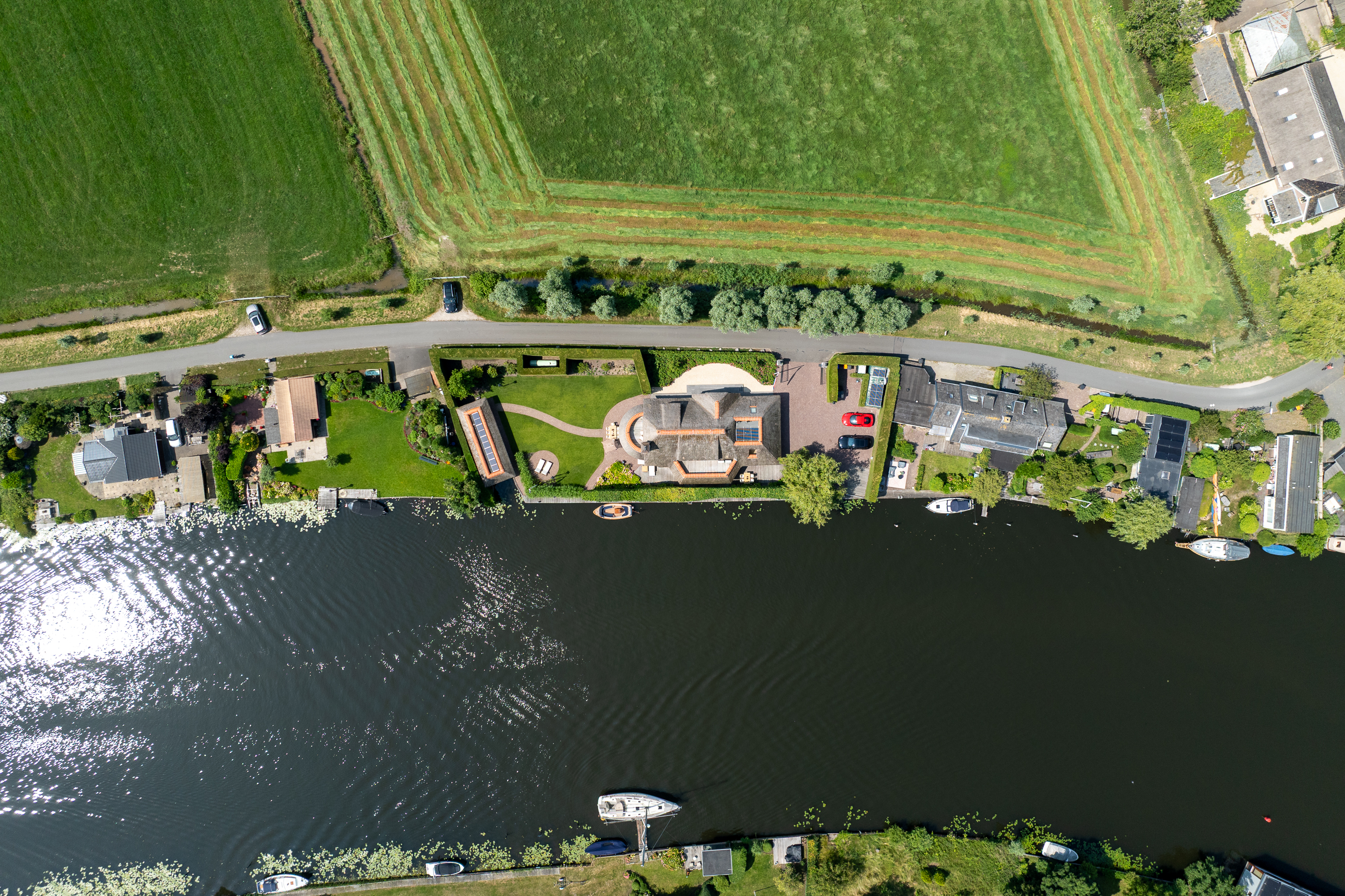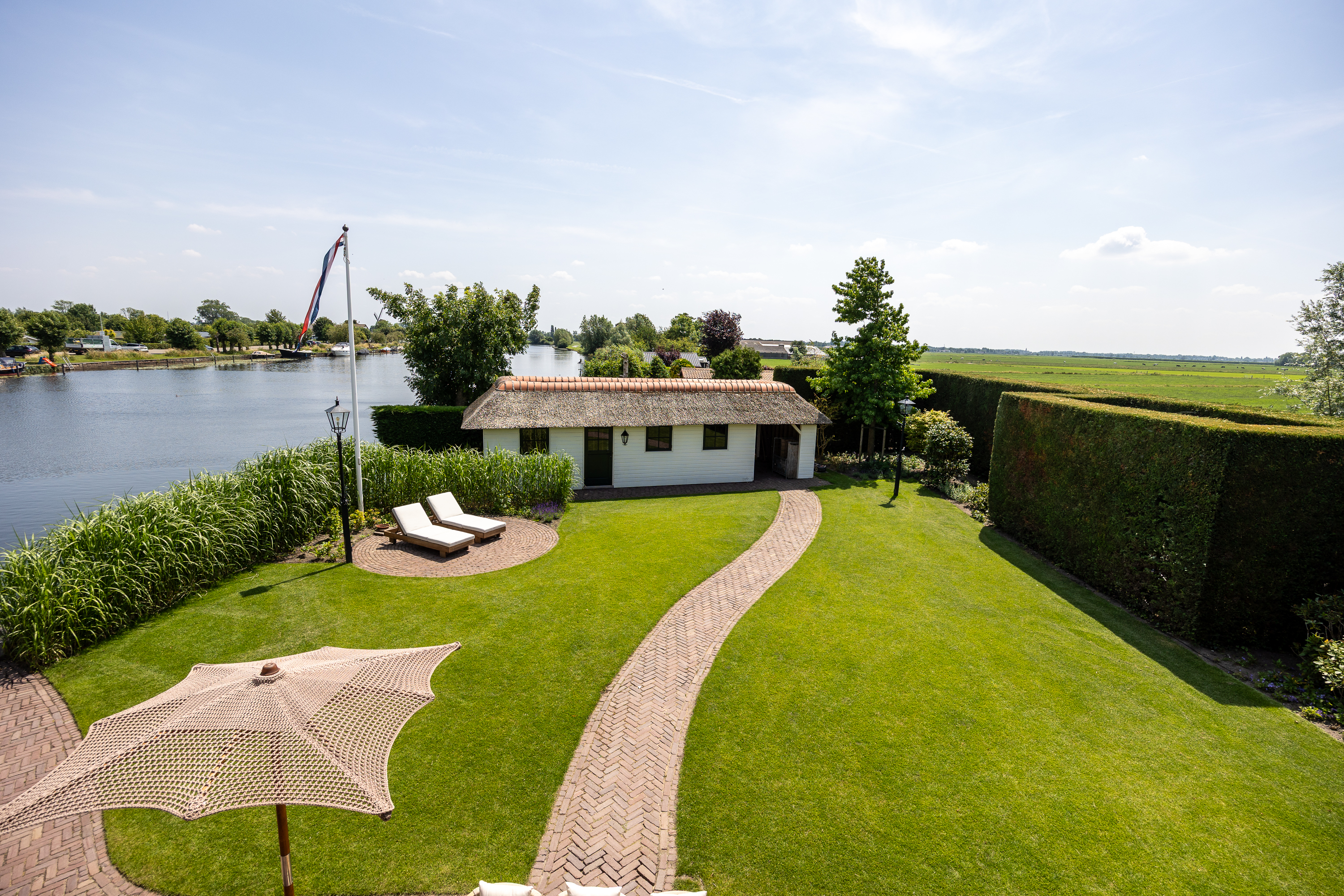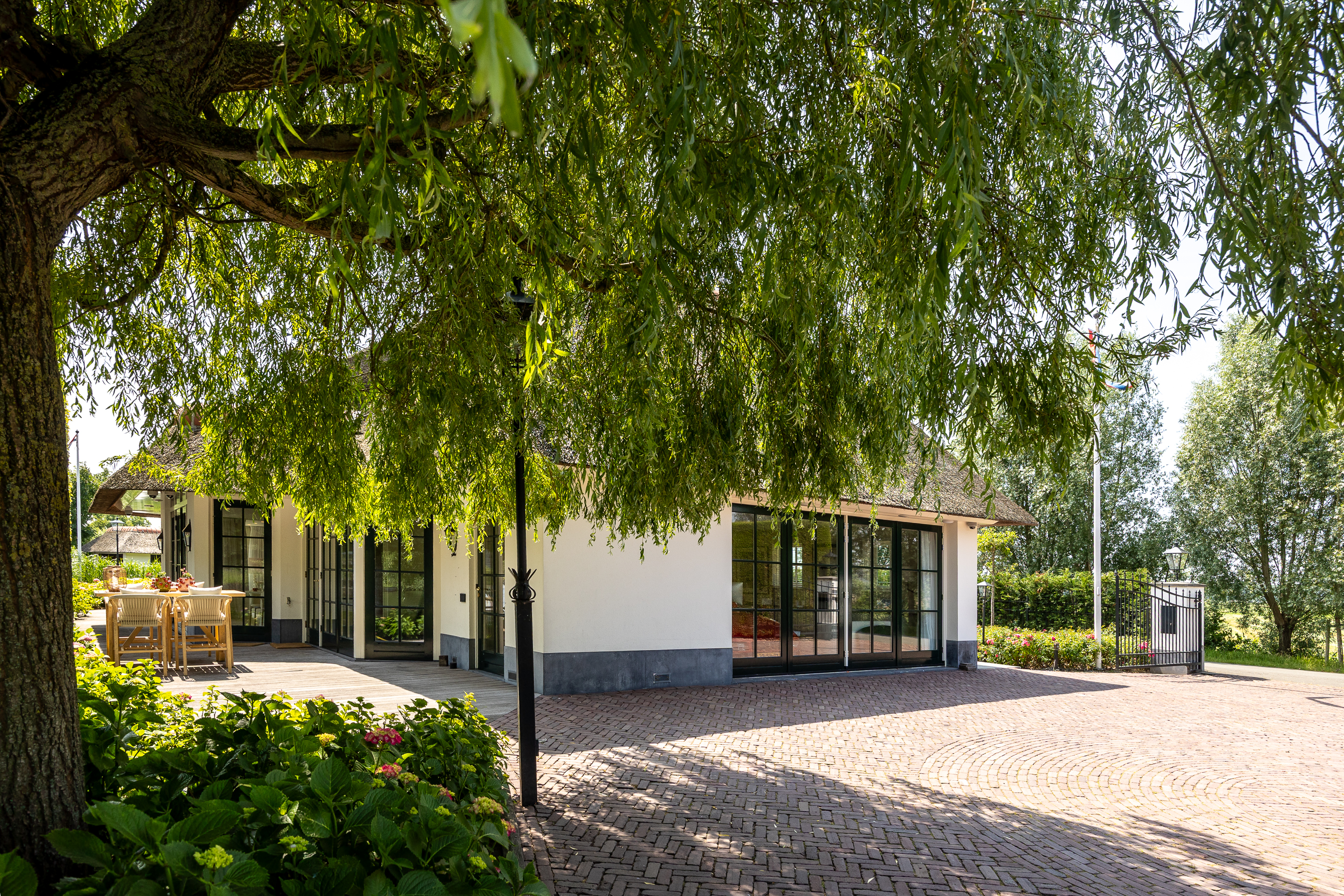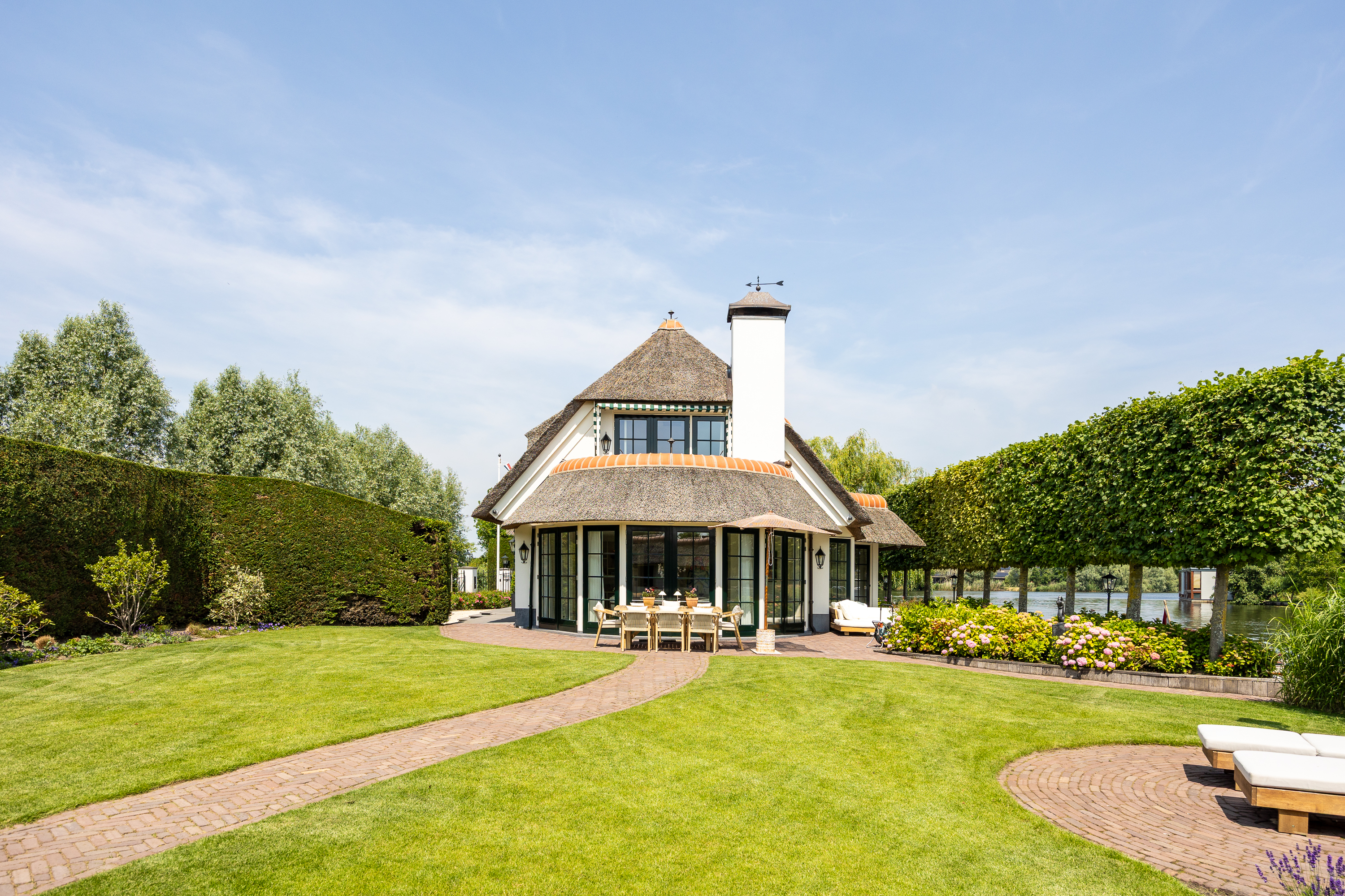 Wanneer je de hectiek van de grote stad hebt verlaten en via een oer Hollandse landweg al slingerend langs de prachtige rivier “de Vecht” de woning benaderd valt de rust over je heen als een warme deken. De statige, automatische poort opent zich, je parkeert je auto op de ruime parking en je zet je auto uit. Je bent thuis.