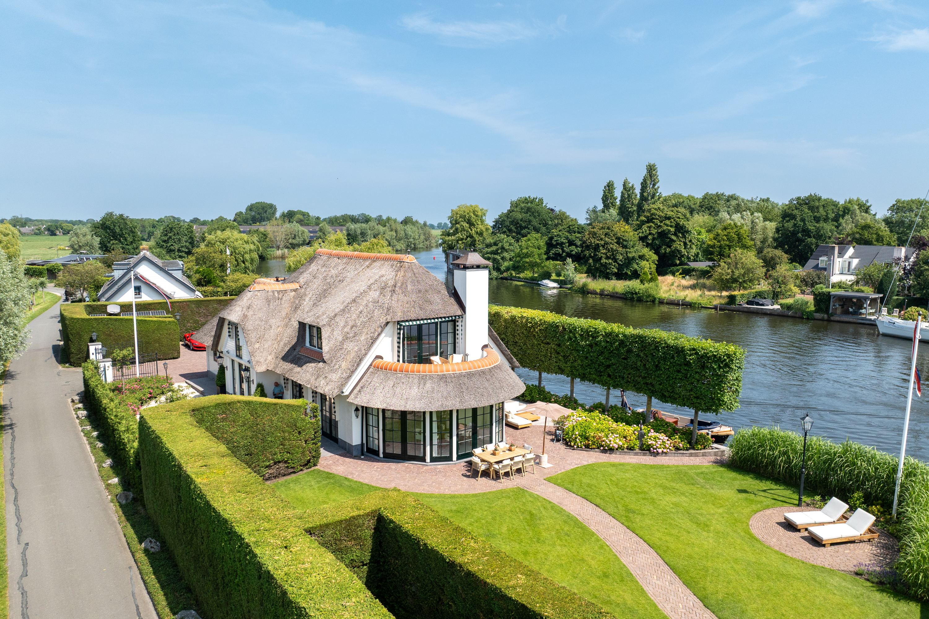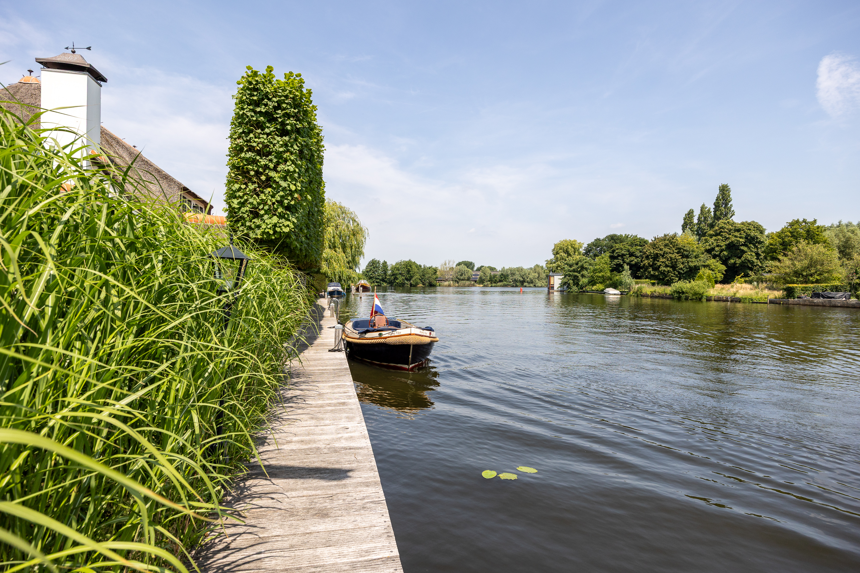 Vreelandseweg 99 te Nigtevecht - Een prachtige, moderne (totaal gerenoveerd 2023), luxe, rietgedekte villa aan de majestueuze Rivier “de Vecht” onder “de rook” van Amsterdam. Hier wonen betekent eindeloos genieten met familie en vrienden van de prachtige natuur, de gezelligheid van het watersport leven op de rivier maar ook de ultieme rust en privacy welke deze magistrale plek te bieden heeft. En dat op een steenworp (20 min) van Amsterdam en de gezellige dorpen Nigtevecht en Vreeland (5 min).