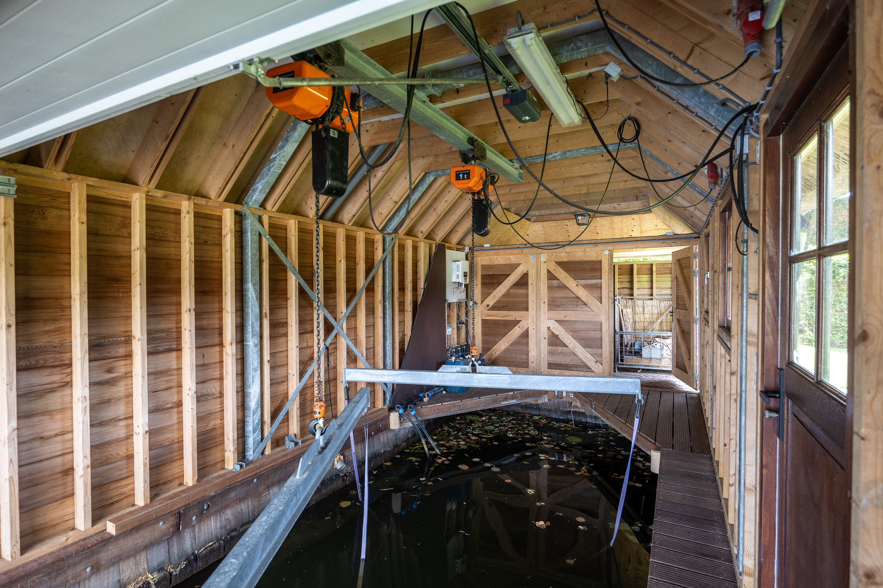 Hier kunt u de boot s’winters uit het water hijsen en laten overwinteren. Ook zomers ideaal om de boot te liften daar het onderwaterschip brandschoon blijft. Tevens is hier ook de gehele geautomatiseerde tuinirrigatie aanwezig, volledig geautomatiseerd en bedienbaar via de app!