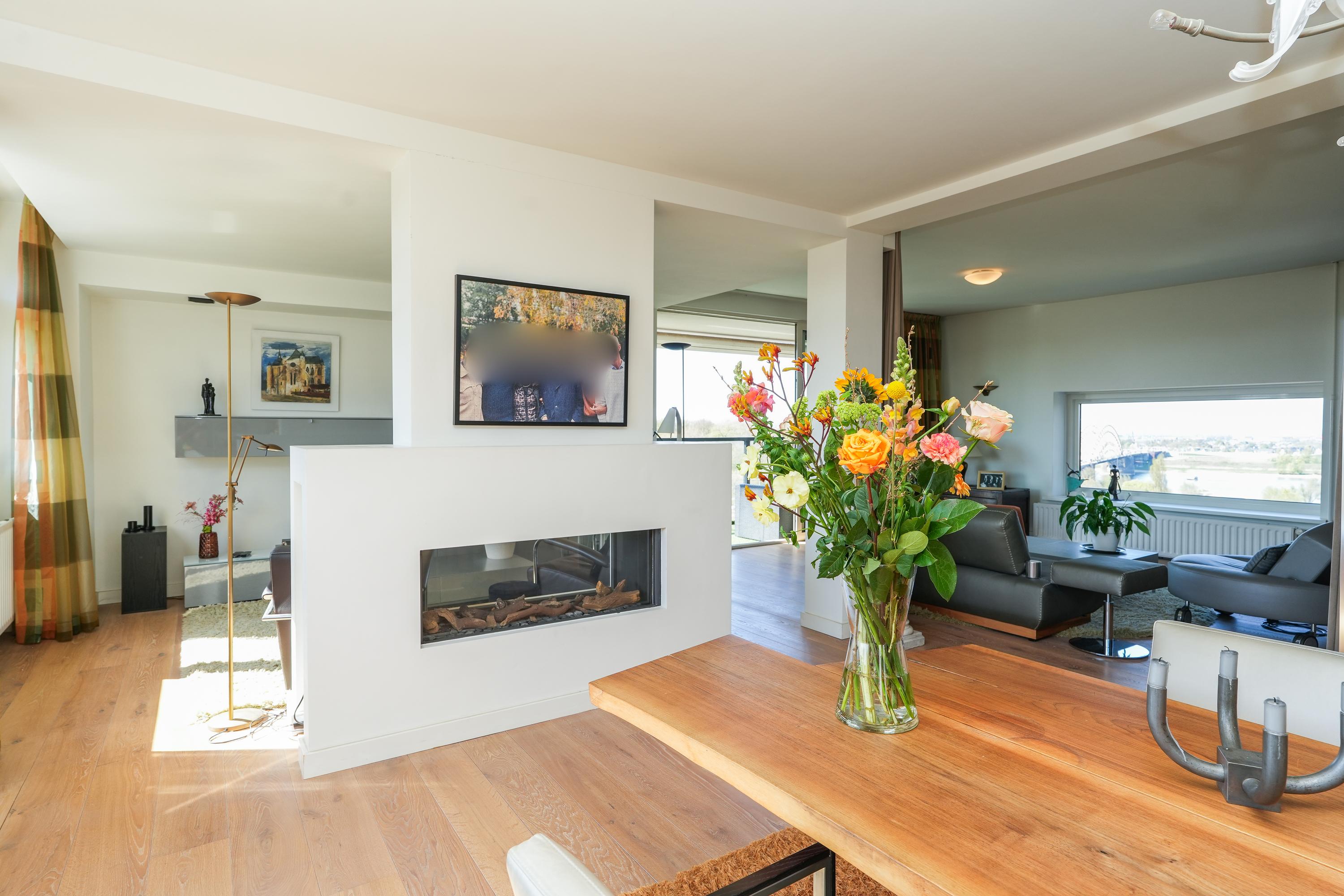 De woning is in 2009 ontstaan uit twee samengevoegde appartementen (nummers 44 en 46), wat heeft geresulteerd in een opmerkelijk ruim en logisch ingedeeld geheel met een duidelijke scheiding tussen wonen (44) en slapen (46). Tijdens deze samenvoeging is het appartement volledig en hoogwaardig gerenoveerd. In de woonkamer en hal ligt een massief eikenhouten vloer, wat samen met de strakke afwerking en het overvloedige daglicht zorgt voor een warme, luxe uitstraling. Grote raampartijen rondom bieden veel licht en indrukwekkende zichtlijnen met panoramisch uitzicht over de Waalbrug, de Ooijpolder en de stad. Privacy, comfort en afwerking komen hier samen in een unieke woonbeleving.