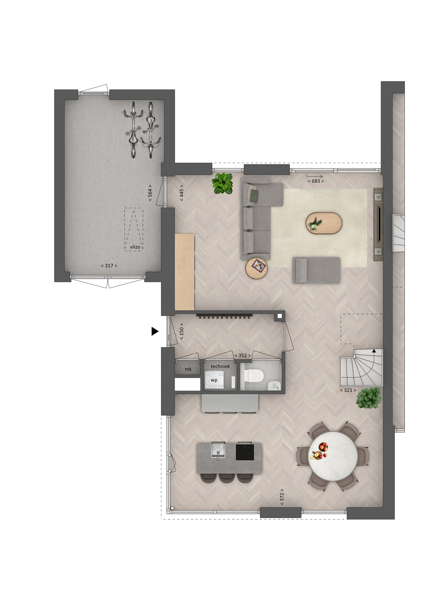 Een karakteristieke woning met houtaccenten en opvallend veel raampartijen! Landelijk en toch modern. Even binnenkijken? Via de voordeur aan de zijkant stap je de hal binnen met toegang tot de meterkast, woonkamer en het toilet. In het open c-vormige woongedeelte staan koken, eten en wonen gezellig met elkaar in verbinding. Koken doe je in de keuken aan de voorkant van de woning. Zet een lekkere grote eettafel neer voor het hele gezin om lang aan te tafelen. In de zomer zet je de schuifpui naar de achtertuin op het zuid-oosten open en verbindt je het binnen leven met buiten. In de woonkamer is genoeg plek voor een gezellige zithoek met een loungebank en grote fauteuil. In de stenen berging heb je ruimte voor de fietsen of tuingereedschap, hoe fijn is dat!