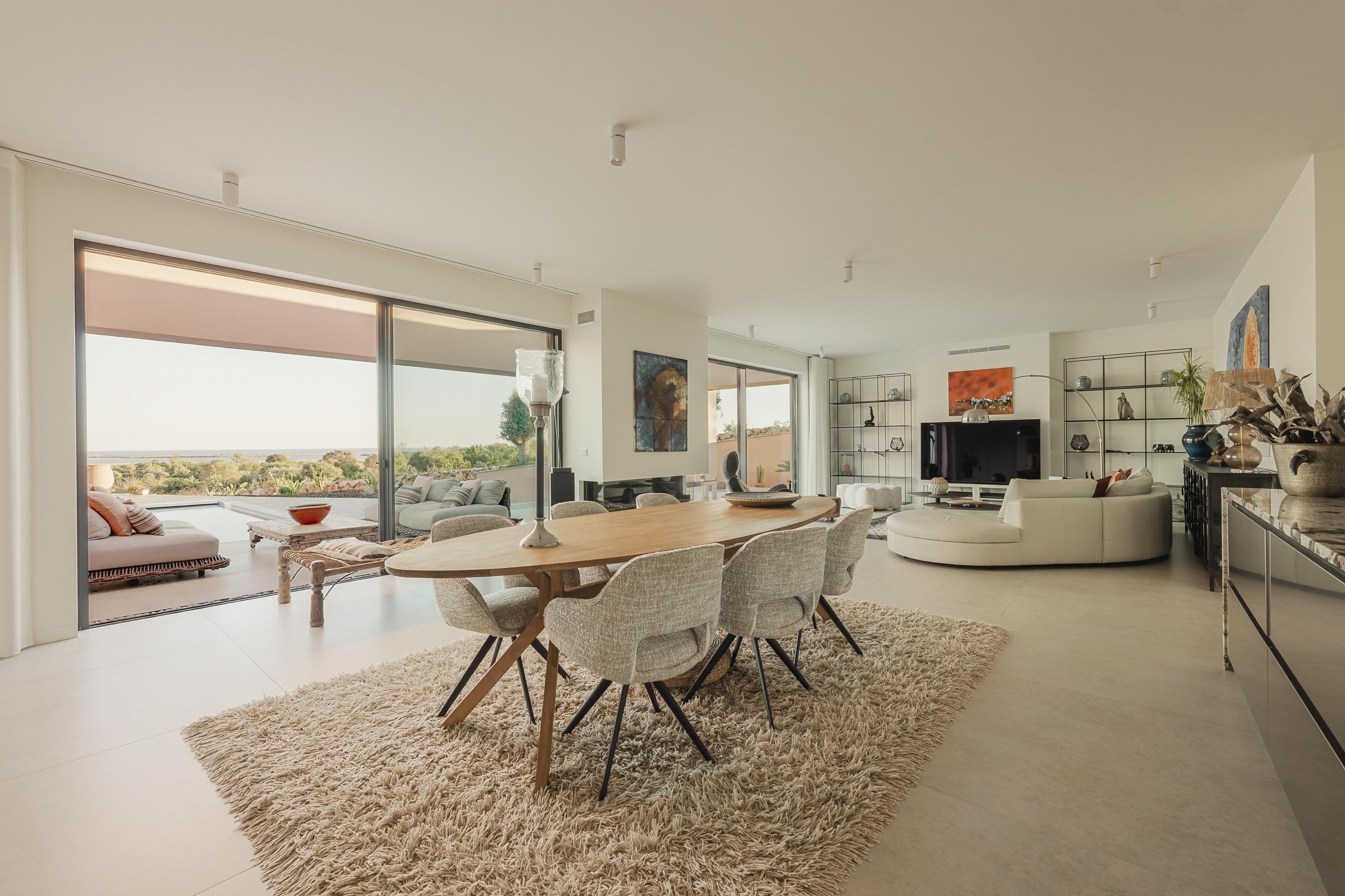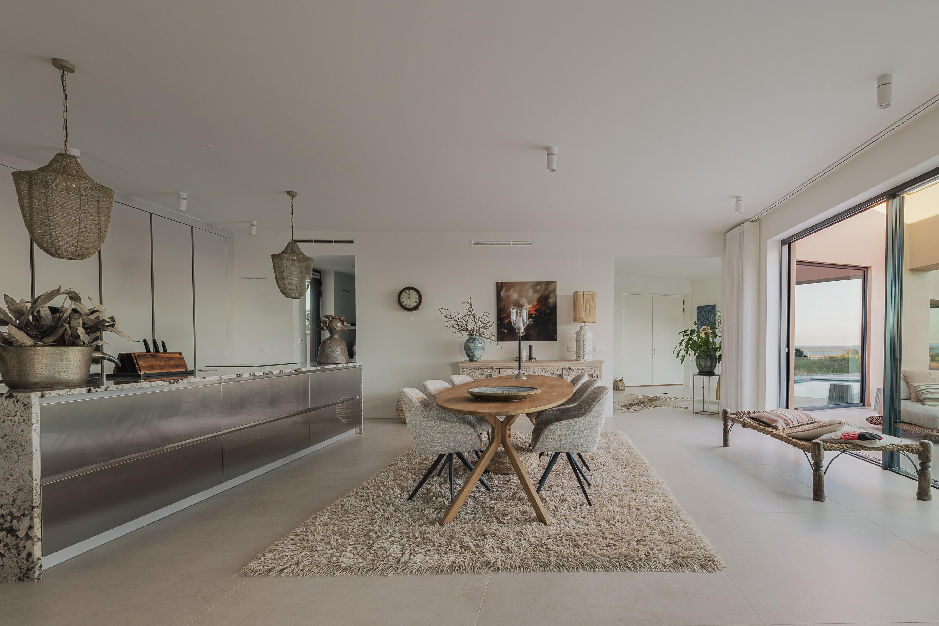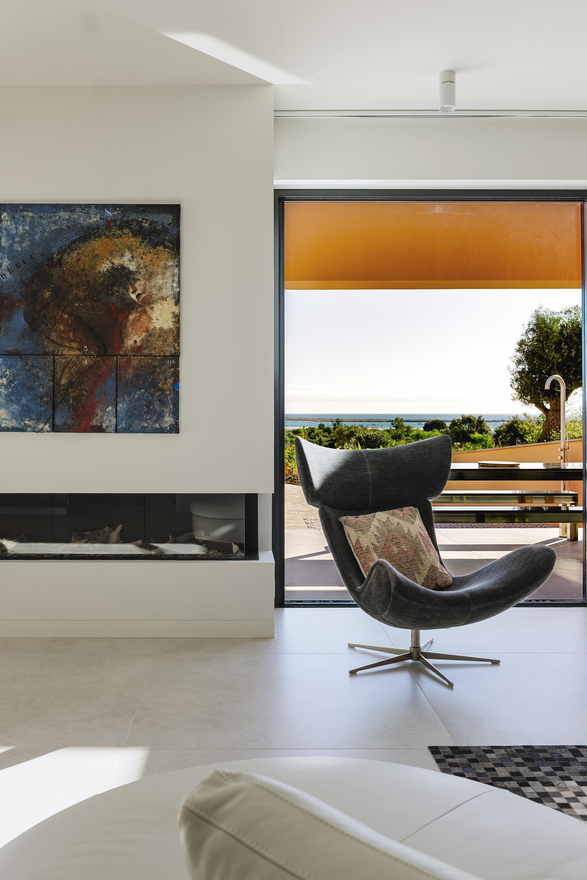 Licht, uitnodigend en met weids uitzicht over de Atlantische Oceaan en Palmares Golf. De naadloze overgang naar terras en zwembad creëert een moeiteloze binnen-buitenbeleving. Het voorste terras kan optioneel worden afgesloten met glas, waardoor een elegante all-season lounge of eetruimte ontstaat zonder het uitzicht te verliezen.
