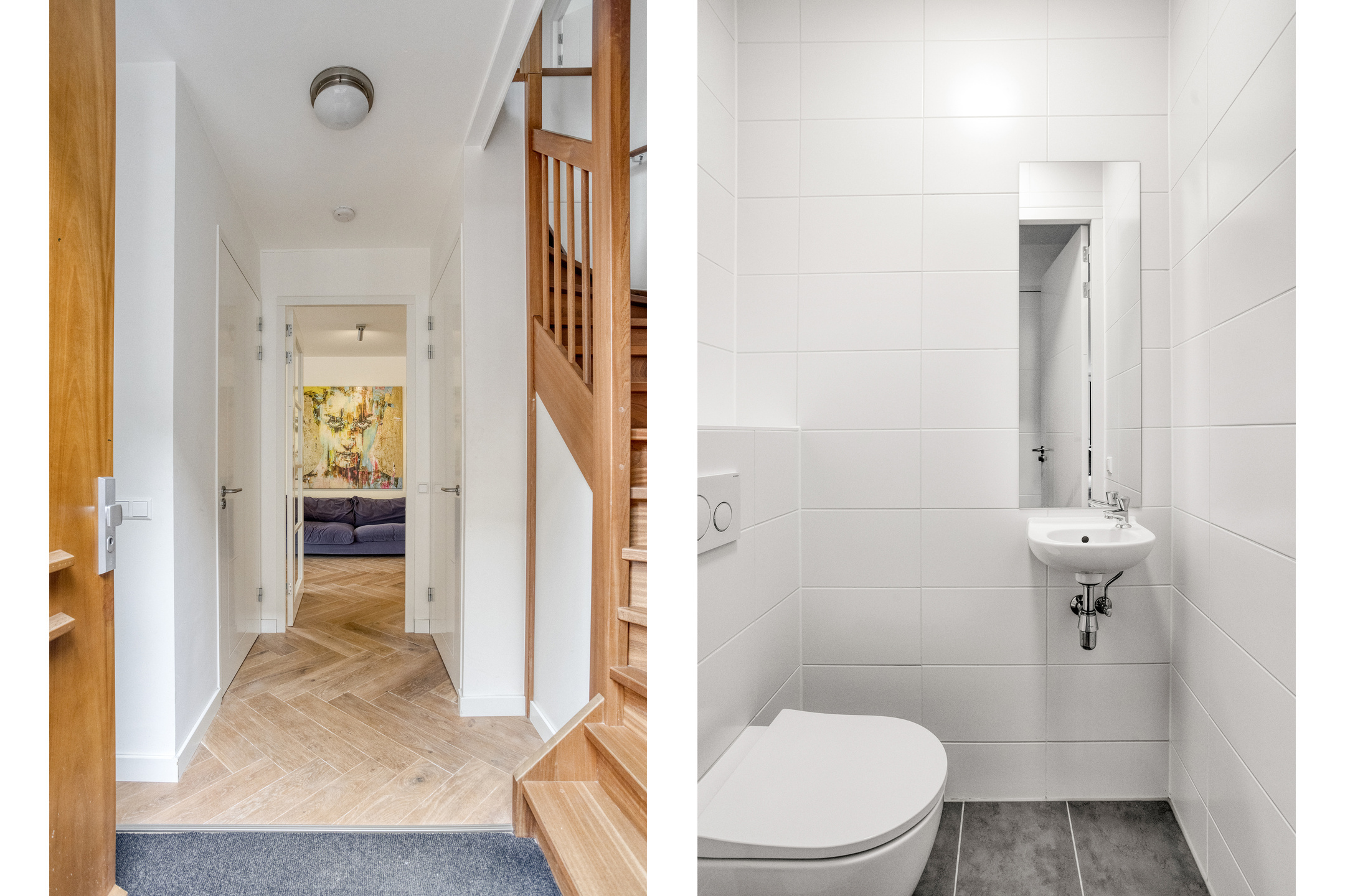• Tweede verdieping: overloop met wasruimte, separaat toilet en CV-opstelling. Tweede moderne badkamer met inloopdouche en wastafel. Verder twee bijzonder ruime en sfeervolle slaapkamers.