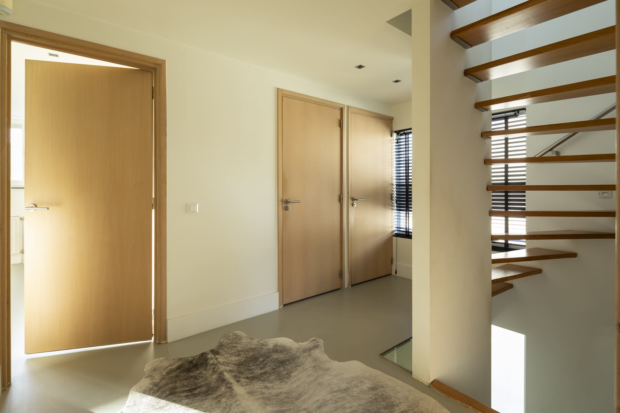 Grenzend aan de ruime overloop liggen drie goede slaapkamers, waaronder de ouder slaapkamer welke voorzien is van een royale inloopkast en inbouwspeakers in het plafond. Deze slaapkamer heeft een badkamer ensuite, je kunt dus de badkamer inlopen vanuit je slaapkamer. Deze badkamer is ook bereikbaar vanaf de overloop. De twee andere slaapkamers liggen aan de voorzijde van de woning. Iedere verdieping is voorzien van een airco unit, zodat het in de zomer overal heerlijk koel blijft.