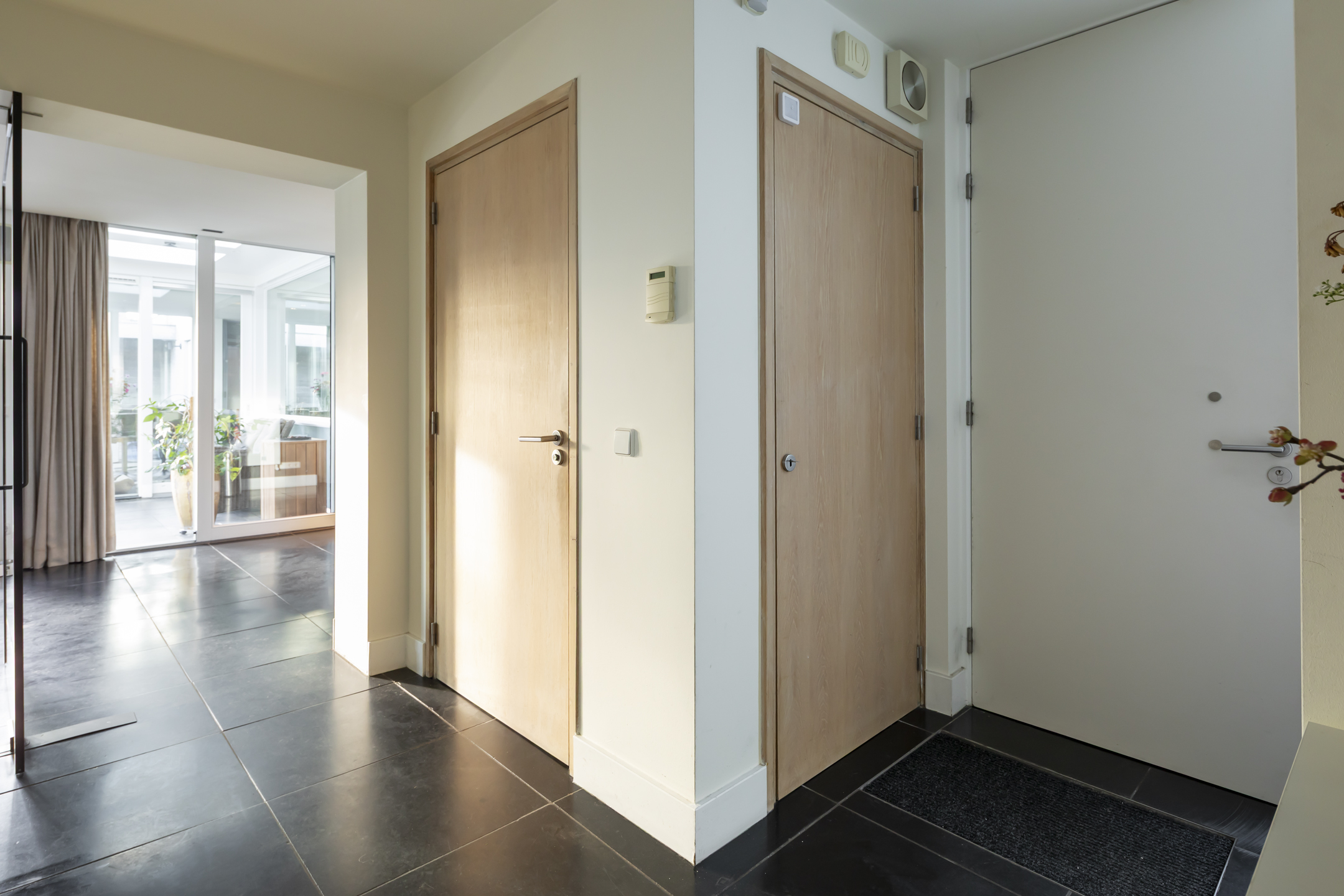 De voordeur bevindt zich aan de zijkant van de woning, hier treed je de hal binnen. In deze fraaie hal waar zich de meterkast, de toiletruimte, de trapopgang naar de verdieping bevinden, kom je met een mooie glazen taatsdeur de woonkamer binnen.