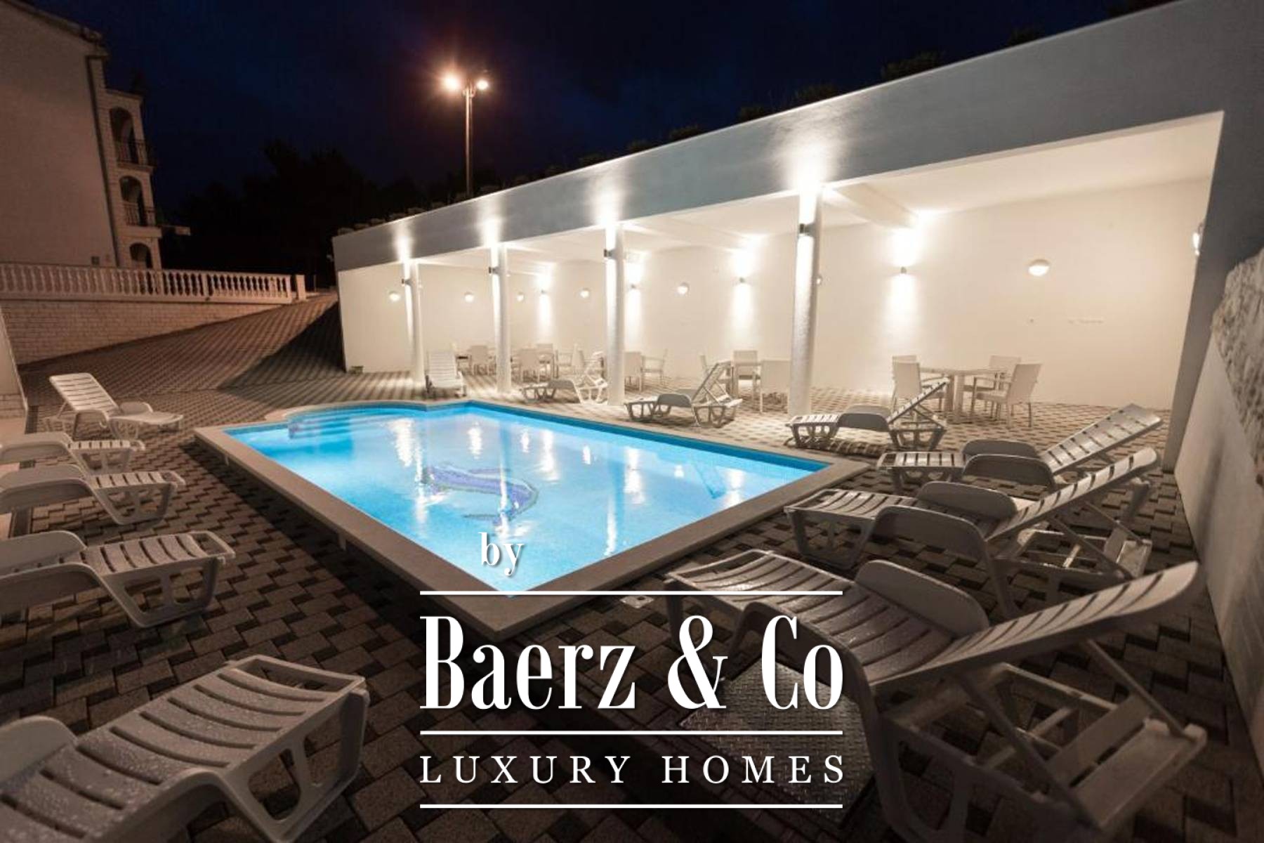 Buiten vormt een verwarmd zwembad van 32 m² het centrale middelpunt, omgeven door zonneterrassen en sfeervol ingerichte buitenruimtes voor samenzijn. Sfeervolle looppaden van lokale Brac-steen slingeren over het perceel, terwijl de terrasvormige eetgedeelten met ingebouwde barbecues uitnodigen tot ontspannen sociale bijeenkomsten. De interieurs zijn gericht op functioneel comfort, met houten parketvloeren in de slaapkamers en keramische tegels in de keukens, eetkamers en badkamers. Iedere unit beschikt over airconditioning en een thermische gevelbekleding, waardoor het pand het hele jaar door comfortabel is om in te wonen. Kunststof kozijnen en houten deuren zorgen voor een uitgebalanceerd geheel van duurzaamheid en warmte.
