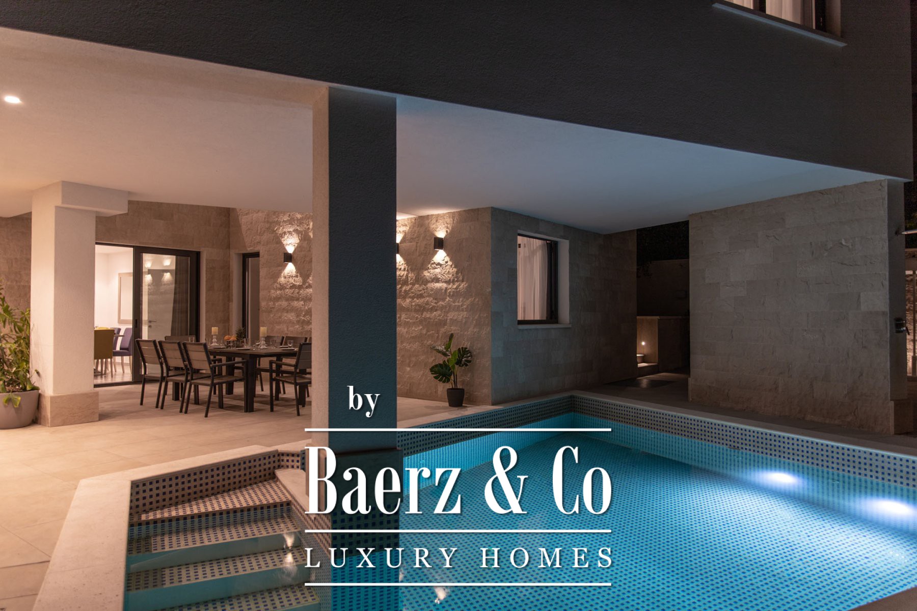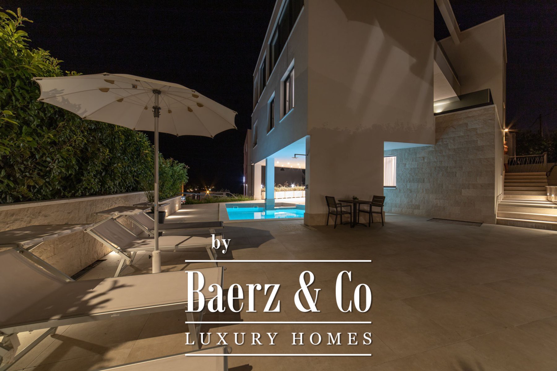 Buiten vindt u een zwembad van 35 m², zonneterras, tuin en een barbecueplek; ideaal voor ontspannen momenten of privé-ontvangsten. De villa ligt op slechts 80 meter van zee en kiezelstrand, op tien minuten van Trogir en de luchthaven, en dertig minuten van het historische Split. Wie zoekt naar een exclusieve villa te koop in Okrug, vindt hier een zeldzame ligging vlak bij de Kroatische kust met ongeëvenaarde rust en bereikbaarheid.