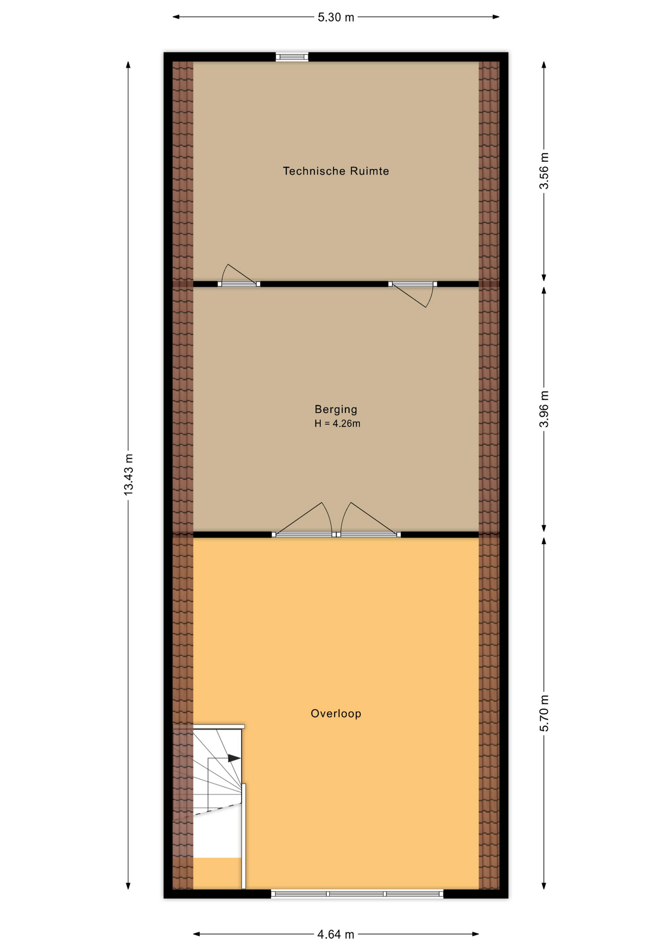 Nagenoeg geheel betegelde ruimte met wasruimte, provisieruimte en technische ruimtes waarin boiler, waterontharder, omvormers voor de PV panelen en de warmtepomp zijn geïnstalleerd.