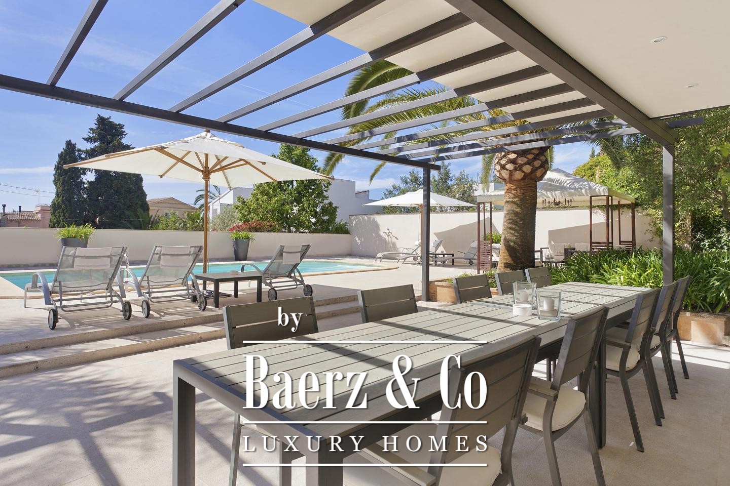 Villa Palma met ETV-vergunning biedt een architectonisch verfijnde woning in Son Roqueta, op slechts enkele minuten van het centrum van Palma en de gerenommeerde golfbanen van Son Vida. Het object combineert een volledig gerenoveerde villa in Bauhaus-stijl van 285 m² met een discrete tweede woning, waarin zich twee moderne gastenappartementen bevinden van in totaal 149 m², beide voorzien van een vergunning voor vakantieverhuur.