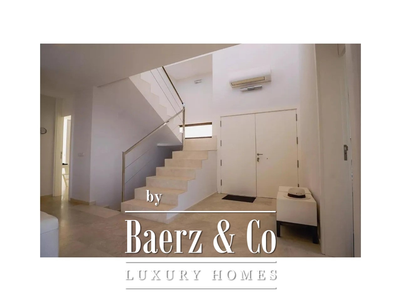 Deze minimalistische villa staat op een perceel van 409 m² en is gebouwd met materialen van de hoogste kwaliteit. De villa biedt een ruime woonkamer met dubbele hoogte en grote ramen die de ruimte met natuurlijk licht overspoelen, een open indeling, twee volledig uitgeruste keukens en vier elegante slaapkamers. De master suite heeft een ruime kleedkamer en een luxe eigen badkamer.