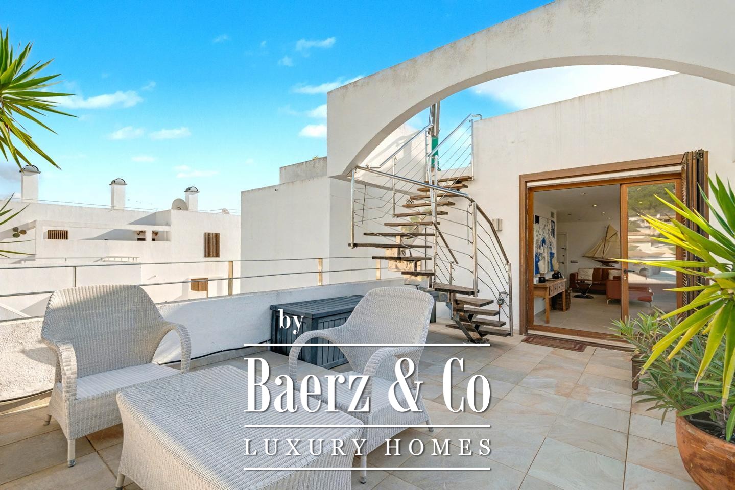 Een privétrap leidt naar het dakterras van het penthouse, een ruime, zonovergoten plek ontworpen voor veelzijdig buitenleven, waar privacy en het zicht op Port d'Andratx elkaar in evenwicht houden. Hier ontstaan mogelijkheden voor een lounge, buitenkeuken of jacuzzi—een unieke plek voor het hele jaar door genieten van het eilandklimaat.