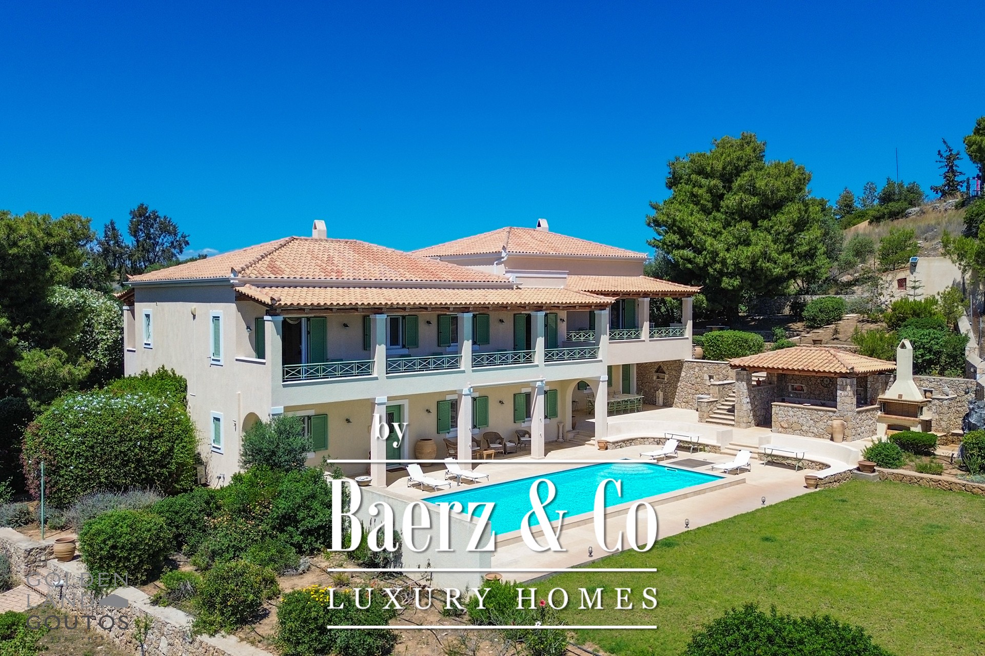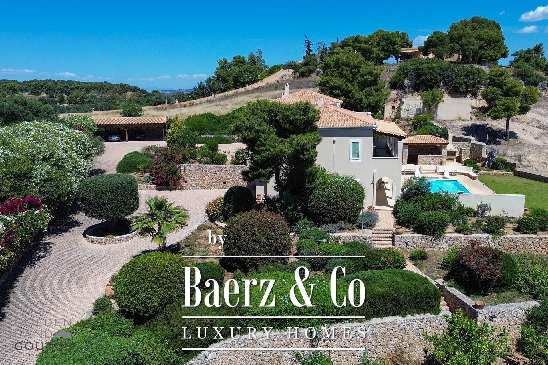 Villa Porto Cheli biedt een bijzonder gevoel van rust en afzondering, gelegen op precies de juiste afstand van het levendige dorpsleven en tegelijkertijd innig verbonden met de natuurlijke schoonheid van de Griekse kustlijn. Deze villa telt 440 m² woonoppervlak op een privéperceel van 4.000 m², waarbij privacy, comfort en architectonische verfijning harmonieus samenkomen. Voor liefhebbers van zowel water als berglandschappen omlijst de oriëntatie van de woning het steeds wisselende licht over land en zee en versmelt het binnenleven naadloos met de omringende natuur.