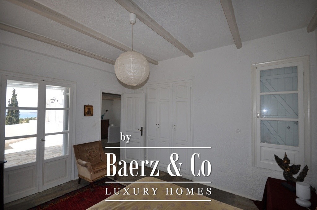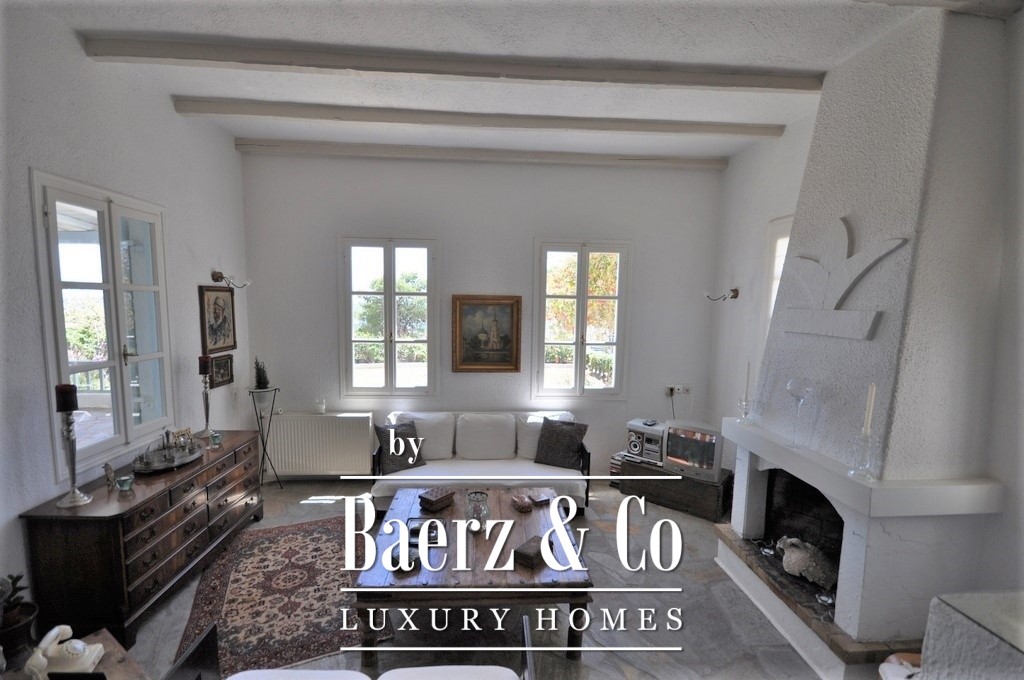De woning omvat drie slaapkamers en twee badkamers, met een halfopen keuken en een woonkamer die uitkomt op royale terrassen. Iedere terras biedt een uniek zeezicht, omlijst door elegante pergola’s die het Egeïsche licht verzachten. De woonkamer beschikt over een open haard, aangevuld met airconditioning, en de afwerking bestaat uit houten kozijnen, marmeren vloeren en Karystos-bestrating die het lokale materiaalgebruik weerspiegelt.