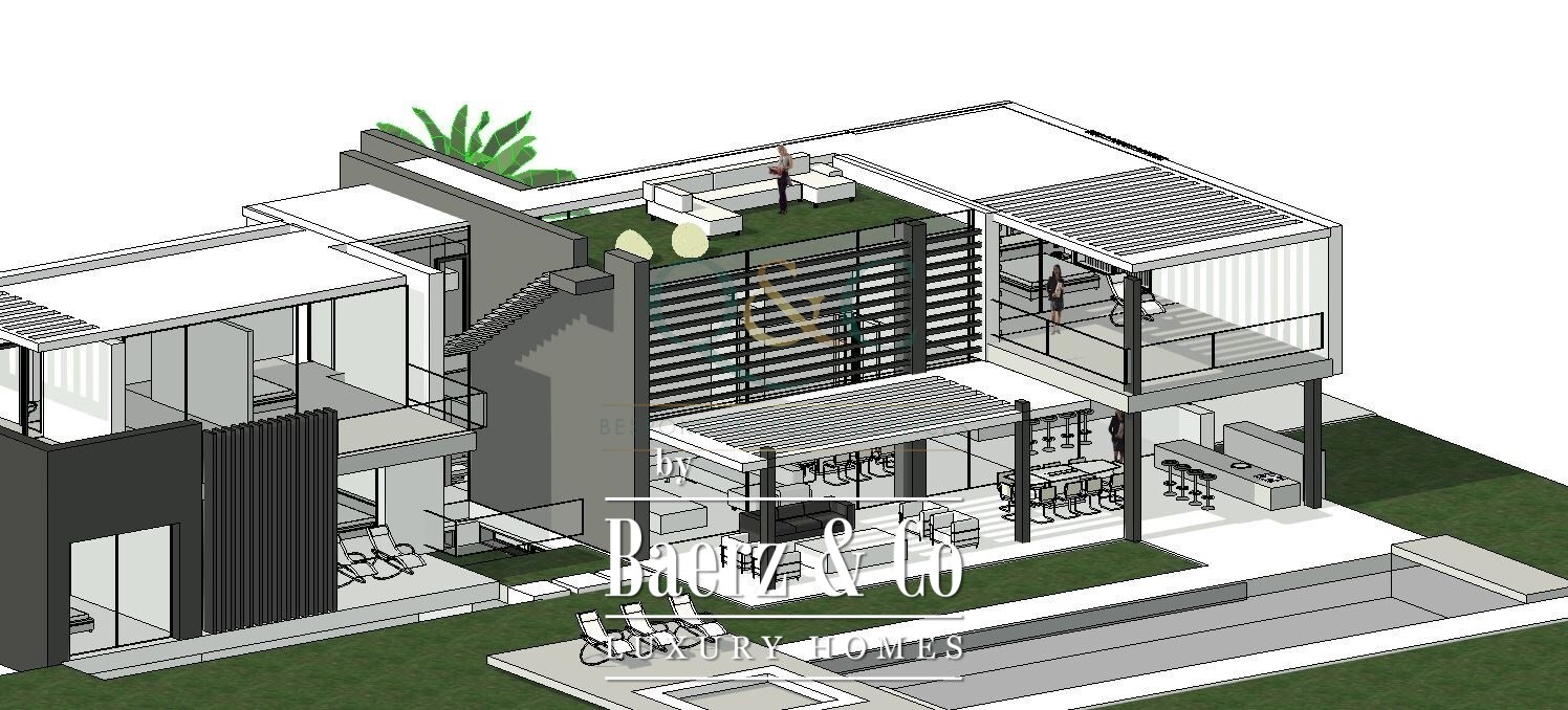 De buitenruimte biedt een infinity pool, een verzonken lounge met vuurplaats en een dakterras met jacuzzi, bar en panoramisch uitzicht over de Algarve. De dubbele garage, beveiligde poorten die klaar zijn voor elektrische voertuigen, geavanceerde VMC-ventilatie en een aansluiting op de hoofdriolering benadrukken de zorg waarmee dit huis is ontworpen. De locatie biedt ongeëvenaarde toegang tot golf, lokale gastronomie, stranden en winkels, waardoor deze luxe villa te koop in Quarteira een zeldzame samensmelting is van stijl, comfort en ligging.