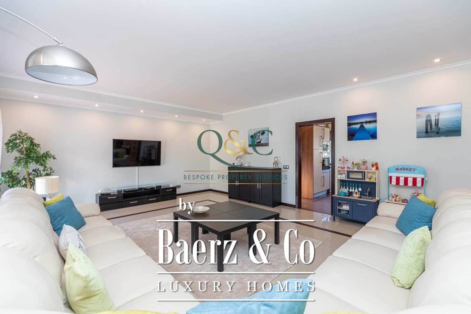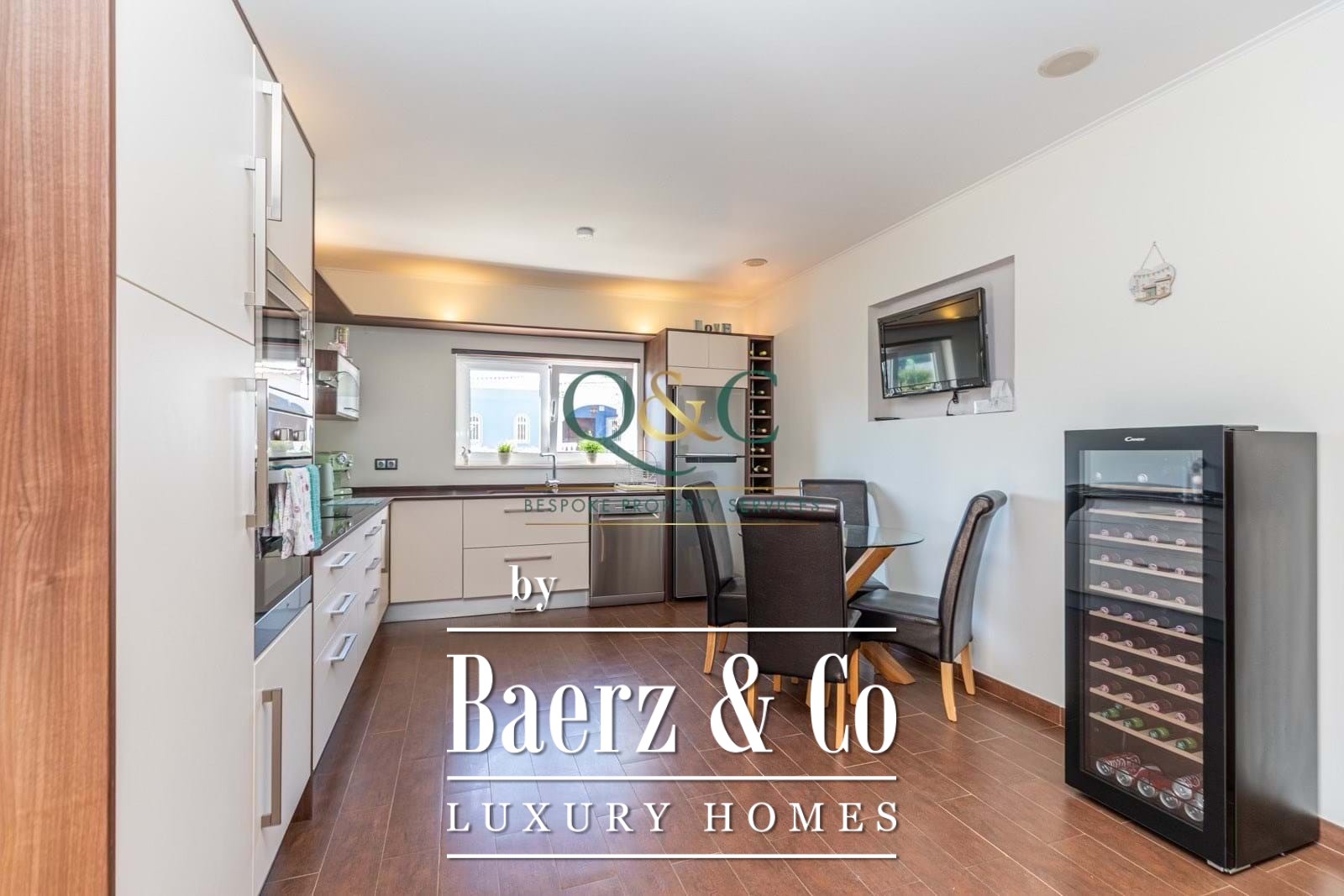 Op de mezzanine delen twee lichte tweepersoonsslaapkamers een privébalkon dat zich uitstrekt langs de villa; daglicht en privacy vloeien moeiteloos samen. In het souterrain bevindt zich een dubbele garage met elektrische poorten en geïntegreerde bergruimte, aangevuld met hoogwaardige beveiligingsvoorzieningen zoals een alarmsysteem, camerabewaking (CCTV) en slimme monitoring op afstand. De volwassen tuin biedt besloten recreatie en wordt gecompleteerd door een overdekt terras, ideaal voor diners in de buitenlucht.