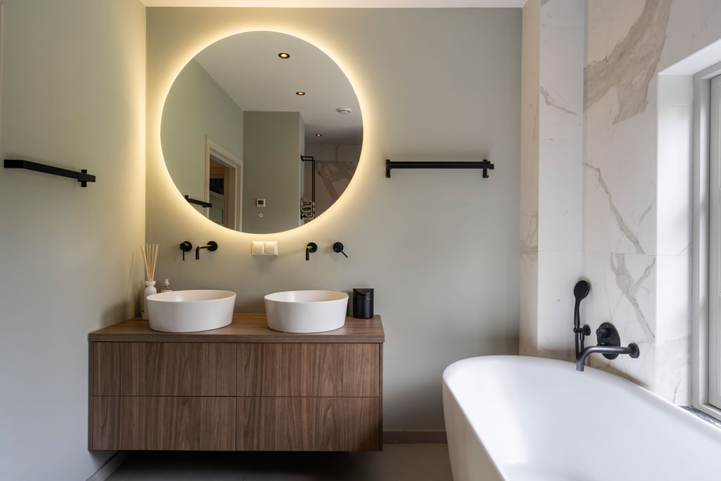 Op de eerste verdieping zijn vier royale slaapkamers aanwezig. Elke kamer is prachtig afgewerkt en biedt veelzijdige mogelijkheden voor gebruik. Of u nu extra slaapkamers, een kantoorruimte, een hobbykamer of een fitnessruimte nodig heeft, deze kamers kunnen geheel naar uw wensen worden ingericht. De fraai afgewerkte badkamer op deze verdieping is voorzien van een luxueus vrijstaand bad, een plek waar u volledig tot rust kunt komen en kunt genieten van een moment voor uzelf.