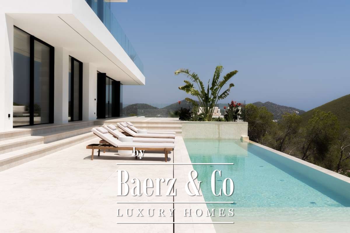 De omgevingPrachtige nieuw gebouwde villa met uitzicht op zee, die de ultieme luxe woonervaring aan de kust biedt in het begeerde Santa Eulalia-gebied. De bouw van deze fantastische residentie is gestart in het voorjaar van 2023 en zal klaar zijn om in de zomer van 2025 te betrekken. De villa ligt in de exclusieve en prestigieuze urbanisatie Roca Llisa, die een afgesloten toegang en 24-uurs beveiliging biedt voor uw privacy, gemoedsrust en veiligheid. Voor golfliefhebbers is de enige golfbaan van het eiland gunstig gelegen op slechts 2 minuten afstand, zodat u gemakkelijk toegang heeft tot uw favoriete tijdverdrijf. Strandliefhebbers kunnen genieten van de vele nabijgelegen stranden, waarvan Cala Olivera het dichtstbijzijnde strand is. Dit is een schilderachtig en afgelegen strand dat binnen 5 minuten rijden te bereiken is. De villa is gunstig gelegen op slechts 12 minuten van de gezellige en culturele oude binnenstad van Ibiza en het elegante Marina Botafoch gebied met 's werelds meest indrukwekkende jachten ligt op slechts 10 minuten afstand. Voor een rustigere stadsbeleving bereikt u het rustige Santa Eulalia binnen 10 minuten rijden, terwijl de luchthaven gemakkelijk te bereiken is in slechts 15 minuten. Deze exclusieve residentie definieert eersteklas wonen op een van de meest gewilde locaties op het eiland, waardoor het echt een ongeëvenaard en voortreffelijk juweeltje is.De villaDe ruime en modern ontworpen luxe villa heeft 6 slaapkamers en 7 badkamers, verdeeld over drie verdiepingen, met een bebouwde oppervlakte van 600m2 op een perceel van 1600m2. Het project is volledig nieuw gebouwd en bij de constructie zijn alleen materialen en afwerkingen van de hoogste kwaliteit gebruikt om een uitzonderlijke eersteklas woning te creëren. De begane grond heeft een open woon- en eetruimte met een moderne open haard en een volledig uitgeruste keuken met een stijlvolle bar. De enorme ramen van vloer tot plafond en de directe toegang tot de buitenruimte sluiten naadloos op elkaar aan voor het ultieme luxe gevoel van een mediterrane woonervaring, aangevuld met prachtig uitzicht op zee. Verder op deze verdieping vindt u drie mooie lichte slaapkamers met ensuite badkamers. Op de bovenverdieping vindt u nog twee slaapkamers met ensuite badkamers en een adembenemend uitzicht. Hoewel de woning naar verwachting in de zomer van 2024 voltooid zal zijn, is dit het perfecte moment om de woning te verwerven, omdat u nog steeds de mogelijkheid hebt om de woning aan uw wensen aan te passen en uw ultieme droomhuis te creëren.De buitenruimtesDe buitenterrassen bieden de perfecte omgeving om met familie of vrienden te genieten van de luxe voorzieningen van het verblijf, zoals het dromerige overloopzwembad met uitzicht op de weelderige bergen en de azuurblauwe Middellandse Zee. Stelt u zich eens voor dat u een barbecueavond houdt in uw ruime eethoek in de buitenlucht tijdens een prachtige zonsondergang met een gouden gloed over de glinsterende Middellandse Zee. Het dakterras is de perfecte omgeving om indruk te maken op uw gasten tijdens cocktails of om 's ochtends te genieten van een yogasessie met een sereen uitzicht. Dit is het perfecte huis voor wie midden in de natuur wil wonen en toch in een veilige omgeving, met de hoogste kwaliteitsnormen. Dit is niet zomaar een huis; deze prachtige villa is de poort naar een buitengewone levensstijl op het magische eiland Ibiza.