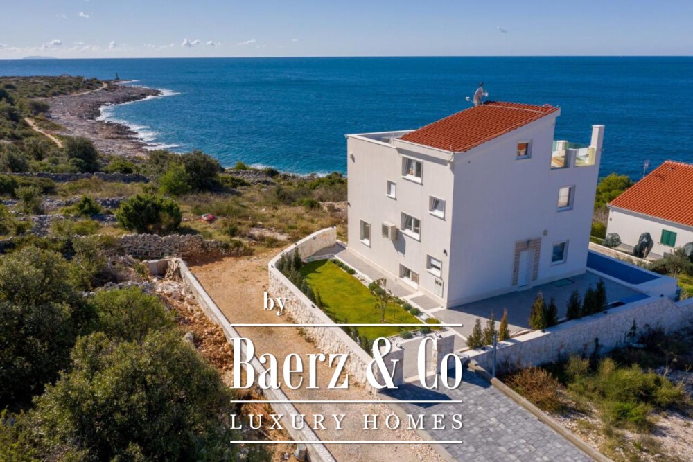 Villa Rogoznica belichaamt het concept van hedendaags wonen aan zee, met een interieur van 380 m² verdeeld over vier doordacht ingedeelde verdiepingen. Deze nieuwgebouwde villa is gelegen op slechts vijftig meter van de Adriatische kustlijn, waardoor u een ongehinderd contact met de zee ervaart. Op de begane grond is de woning ingericht met twee aparte vleugels. De eerste biedt een privégarage, fitnessruimte, machinekamer, badkamer en een leefruimte met keuken. De tweede vleugel beschikt over een extra keuken en woonkamer, beide met toegang tot overdekte terrassen die uitkijken op de oneindige zee. Een buitenzwembad en parkeergelegenheid maken de begane grond compleet en zijn ontworpen voor verfijnd gemak.