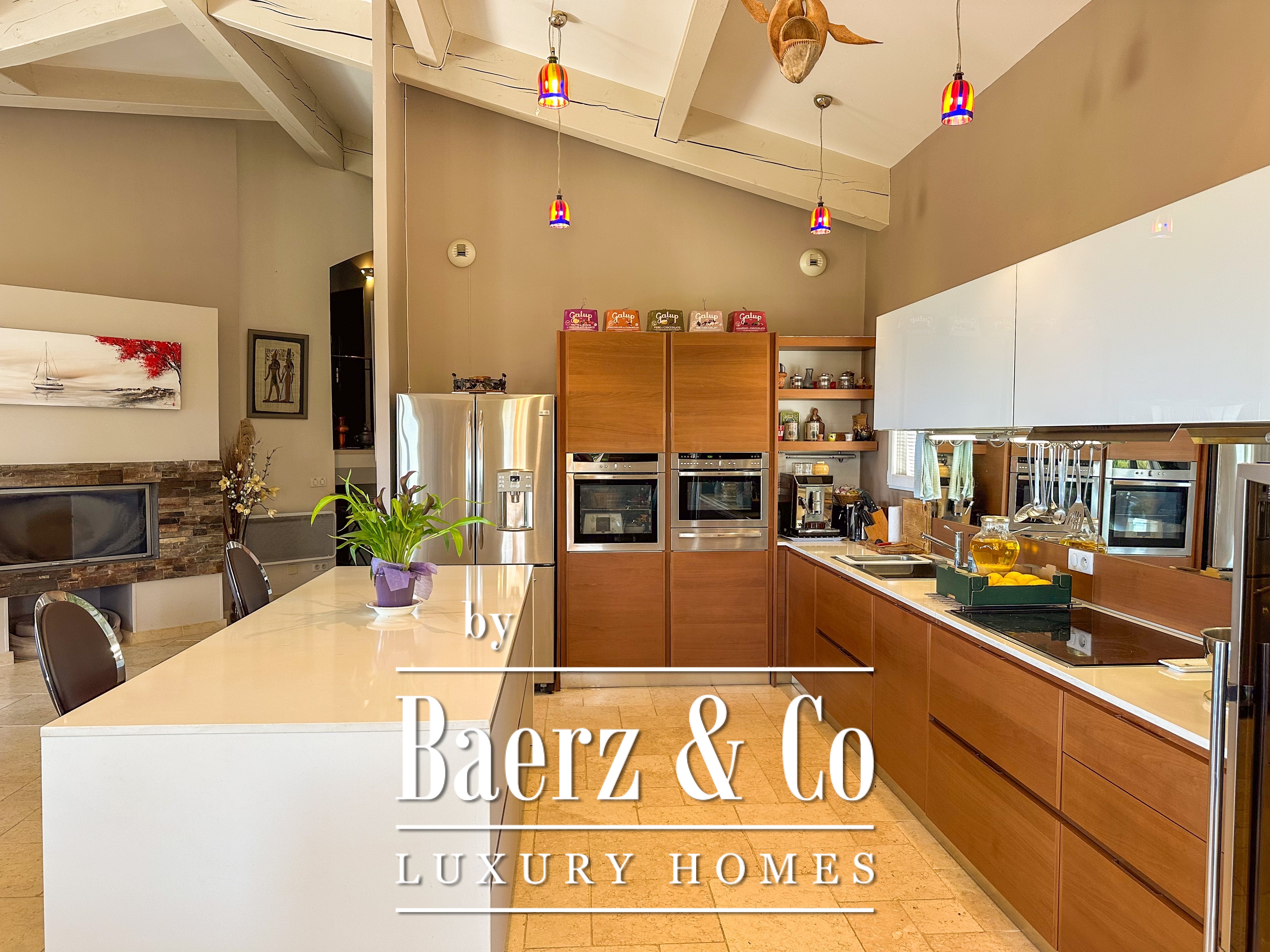 De volledig uitgeruste, zelfstandige keuken is ideaal voor zowel het dagelijks leven als grotere gezelschappen. De hoofdresidentie omvat een master suite met inloopkast en privé-douche, drie additionele slaapkamers en een tweede, stijlvol afgewerkte badkamer met douche. Een apart tweekamerappartement biedt extra flexibiliteit voor gasten of zelfstandig verblijf.