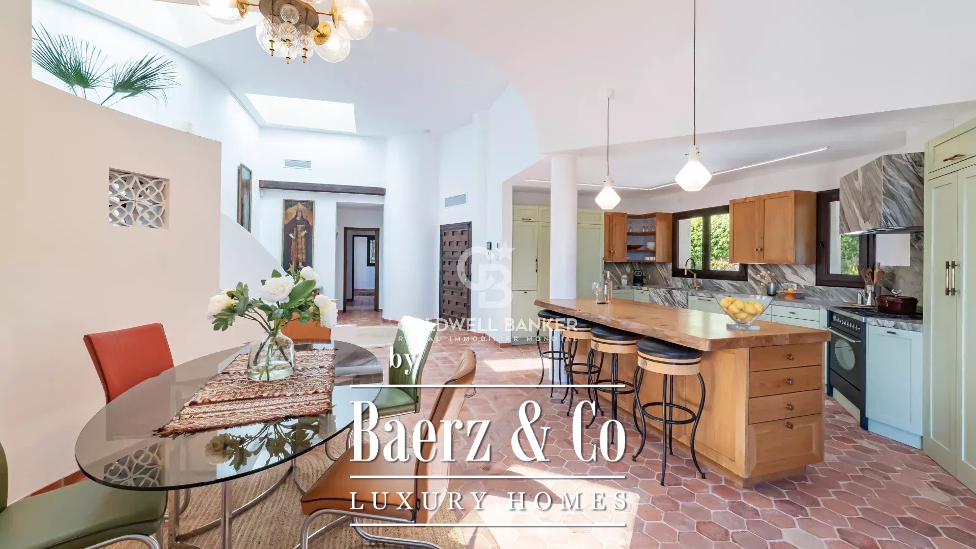 De villa beschikt over 275 m² woonoppervlakte, met twee mastersuites, twee extra slaapkamers en twee zelfstandige studio’s die optimale privacy voor gasten waarborgen. De op maat gemaakte keuken — uitgevoerd in ruw hout en kwartsiet — is een statement van ambachtelijk vakmanschap, harmonieus verbonden met de open eetkamer onder een indrukwekkend kathedraalplafond. De gehele villa is voorzien van airconditioning, een alarmsysteem, videoveiligheid en glasvezel voor hedendaags comfort en veiligheid.