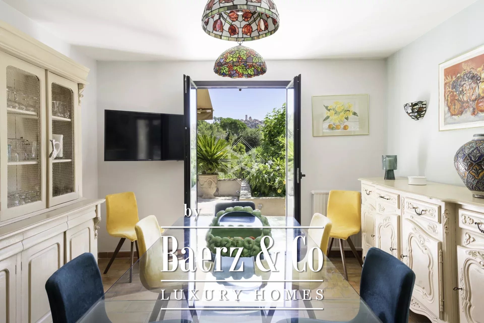 Deze Provençaalse villa in Saint-Paul-de-Vence ligt rustig verscholen in een weelderig, aangelegd perceel van 3.291 m² en biedt een zeldzaam panoramisch uitzicht op het historische dorp. Met 265 m² woonoppervlak verwelkomt de villa u via een royale entree, die direct de toon zet voor verfijnd familieleven. De hoofdwoonkamer beschikt over een open haard en loopt naadloos over in een eetkamer en een televisielounge; ruimtes die zijn ontworpen voor comfortabele samenzijn zonder concessies te doen aan privacy. De keuken biedt een eigen eetgedeelte en grenst moeiteloos aan een royaal terras, perfect voor contemplatie en dineren in de open lucht met prachtig uitzicht op zowel het dorp als de tuin.