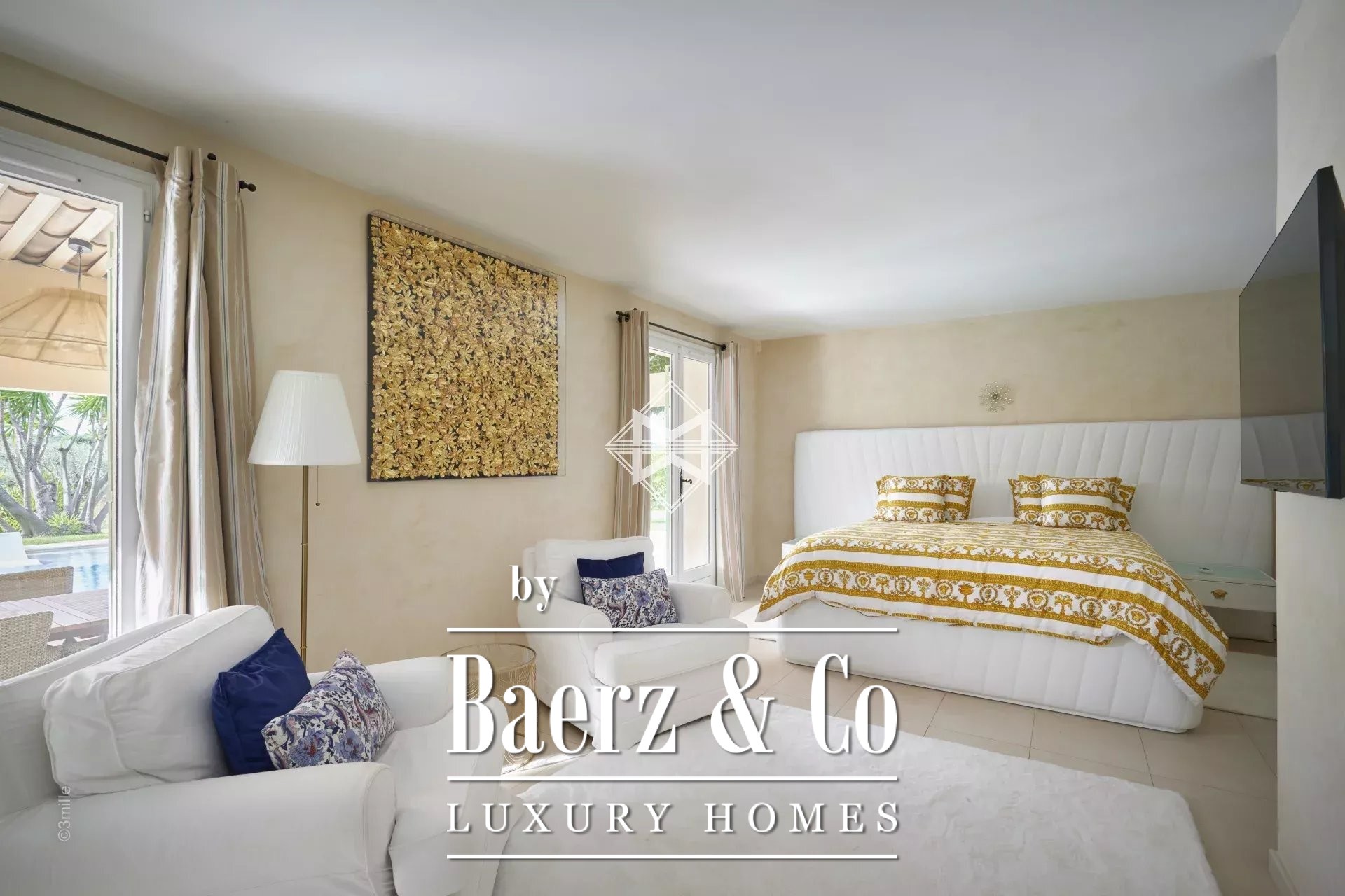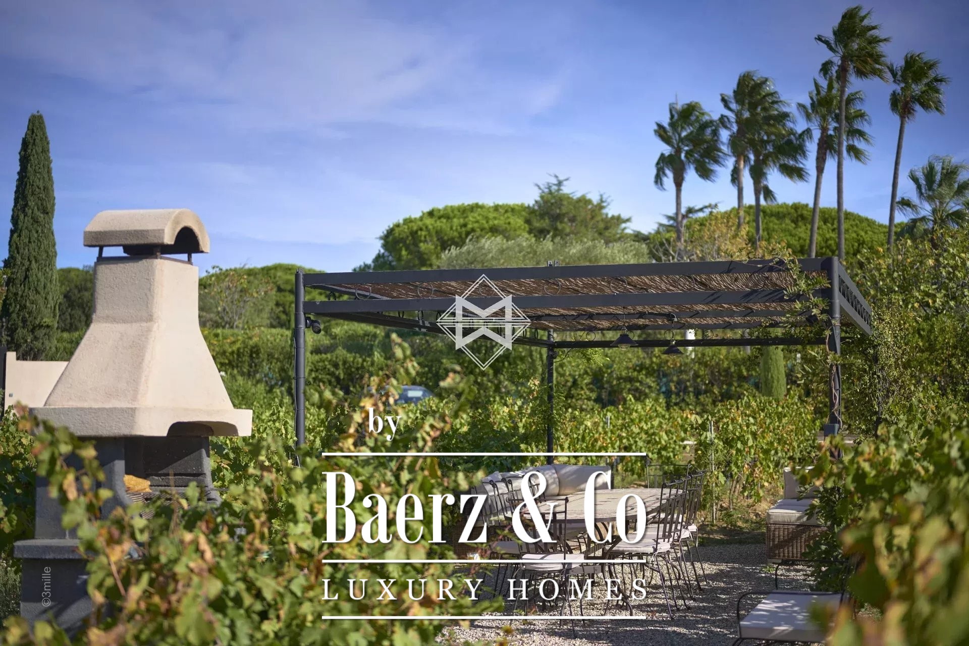 Het pand ligt op een vlak perceel van 6.545 m², beplant met wijnranken, volwassen palmen en olijfbomen, wat zorgt voor een rustige, natuurlijke omheining. Het buitenleven vloeit moeiteloos over van zonnige terrassen naar een royale verwarmde zwembad en poolhouse, alles in een sfeer van rust en blijvende stijl. Voorzieningen van hoog niveau zijn onder meer airconditioning, een open haard, beveiligingssystemen en ruime parkeergelegenheid.