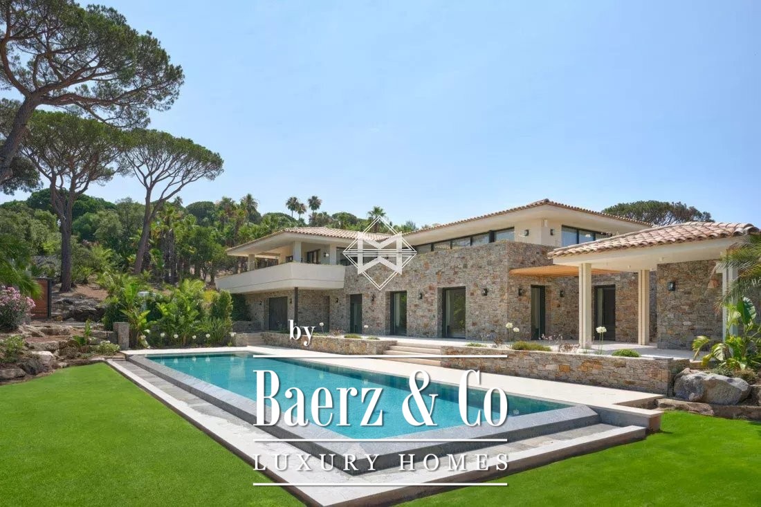 Deze luxe woning in Saint-Tropez ligt nabij het dorp en de beroemde stranden van Pampelonne, en biedt een rustig toevluchtsoord op een royaal perceel van 5.000 m². Het recent gebouwde landgoed strekt zich uit over 500 m², waar een doordacht samenspel van licht, ruimte en verfijnde materialen een sfeer van ingetogen elegantie creëert.