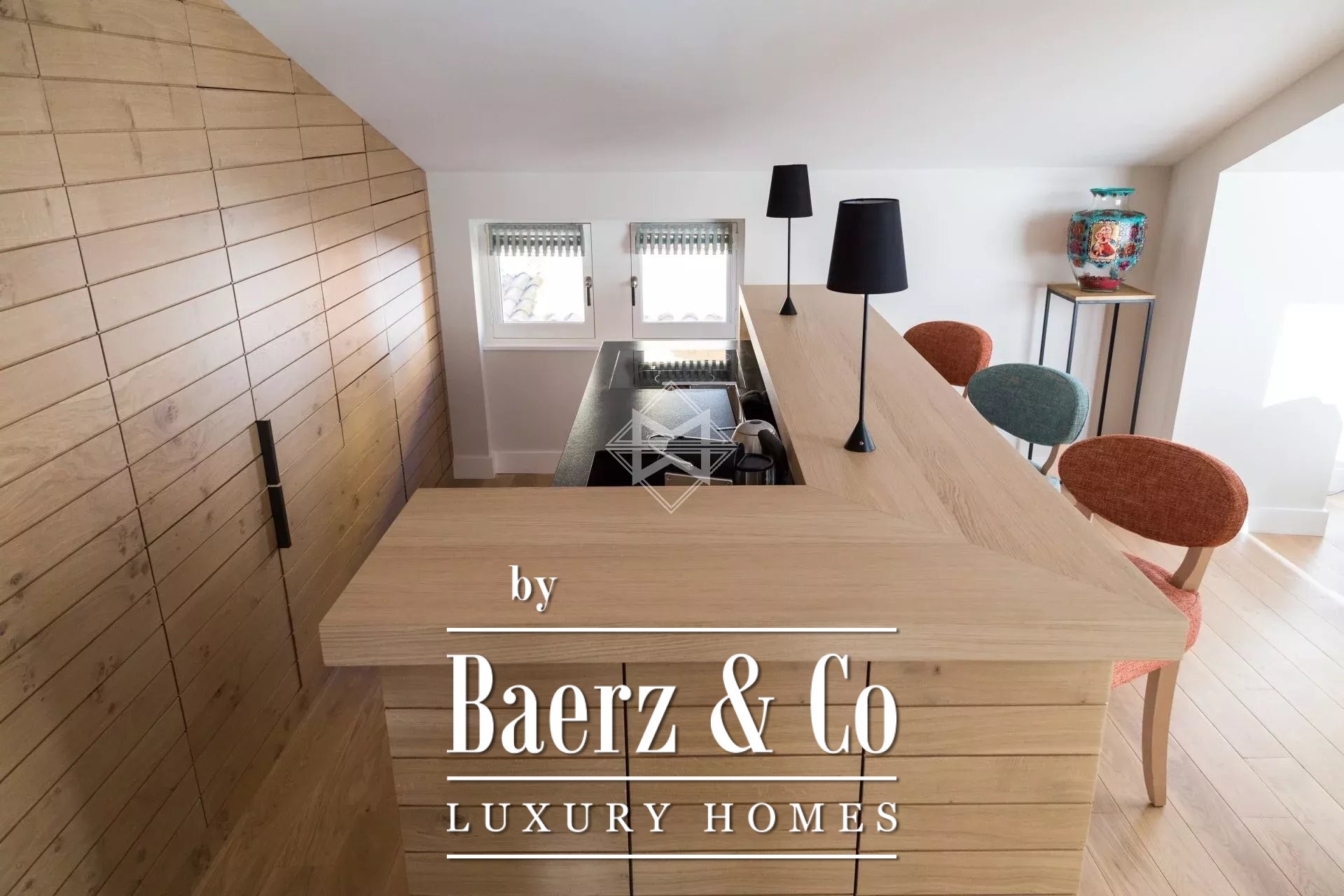 Een tweede keuken met eethoek leidt naar een living die direct uitkomt op een ruim terras. Hier beleeft u de karakteristieke dorpssferen en het onmiskenbare klokkentorentje dat de skyline van Saint-Tropez markeert. Hoogwaardige materialen en afwerkingen dragen bij aan een kalme, verfijnde sfeer door de gehele woning, met voorzieningen als airconditioning, dubbele beglazing, een open haard en een zorgvuldig geselecteerd pakket aan extra’s, waaronder een jacuzzi, alarmsysteem, kluis, wellness en meer.