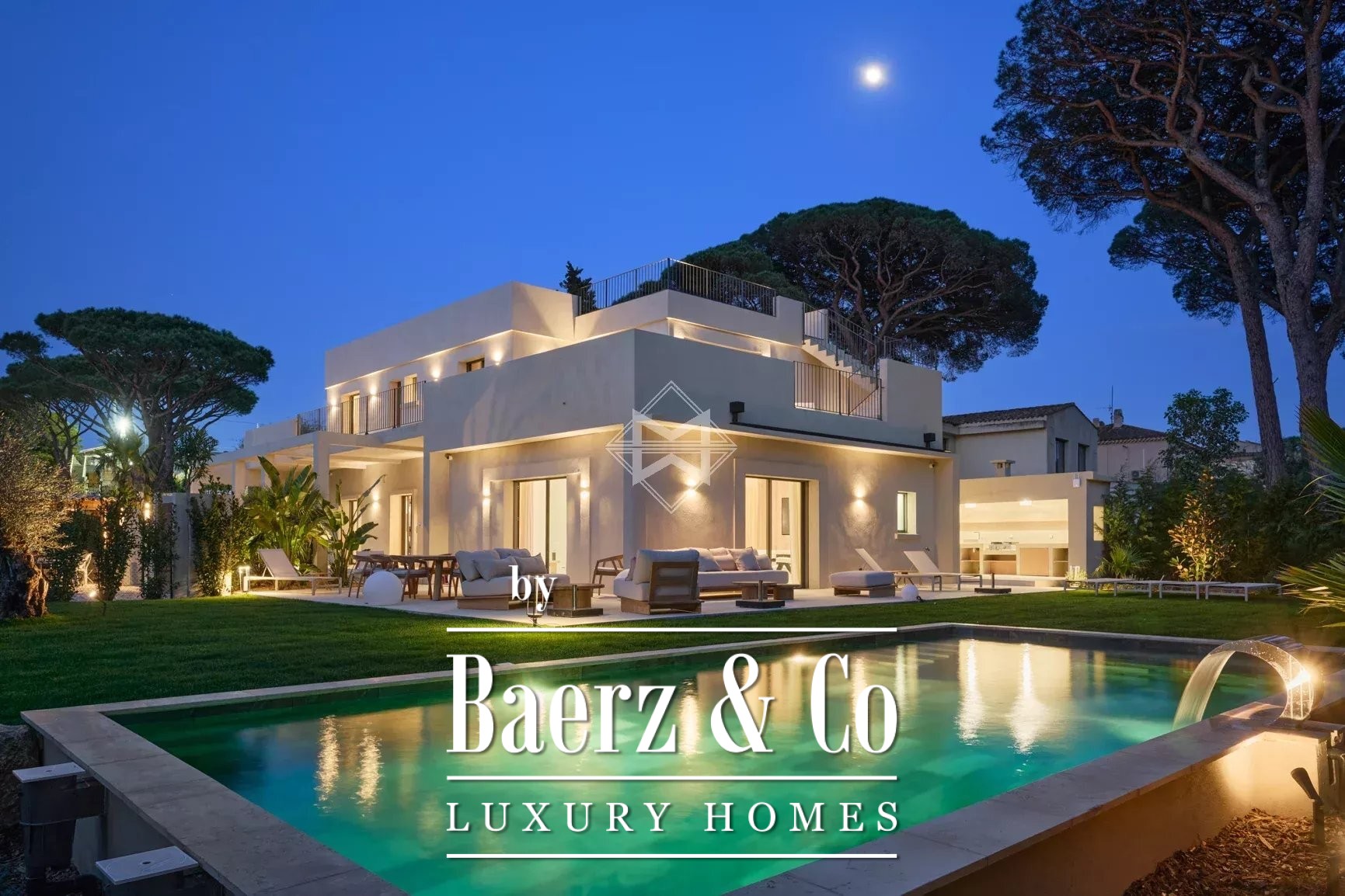 Deze hedendaagse villa in Saint-Tropez biedt directe nabijheid tot zowel de kustlijn, op slechts 250 meter afstand, als de levendige cultuur van Saint-Tropez, slechts twee kilometer van het dorpscentrum. De villa is in 2025 volledig gerenoveerd, gelegen op een fraai aangelegd perceel van 1.083 m² met uitzicht op zee en het glooiende landschap vanaf een indrukwekkend dakterras van 100 m².