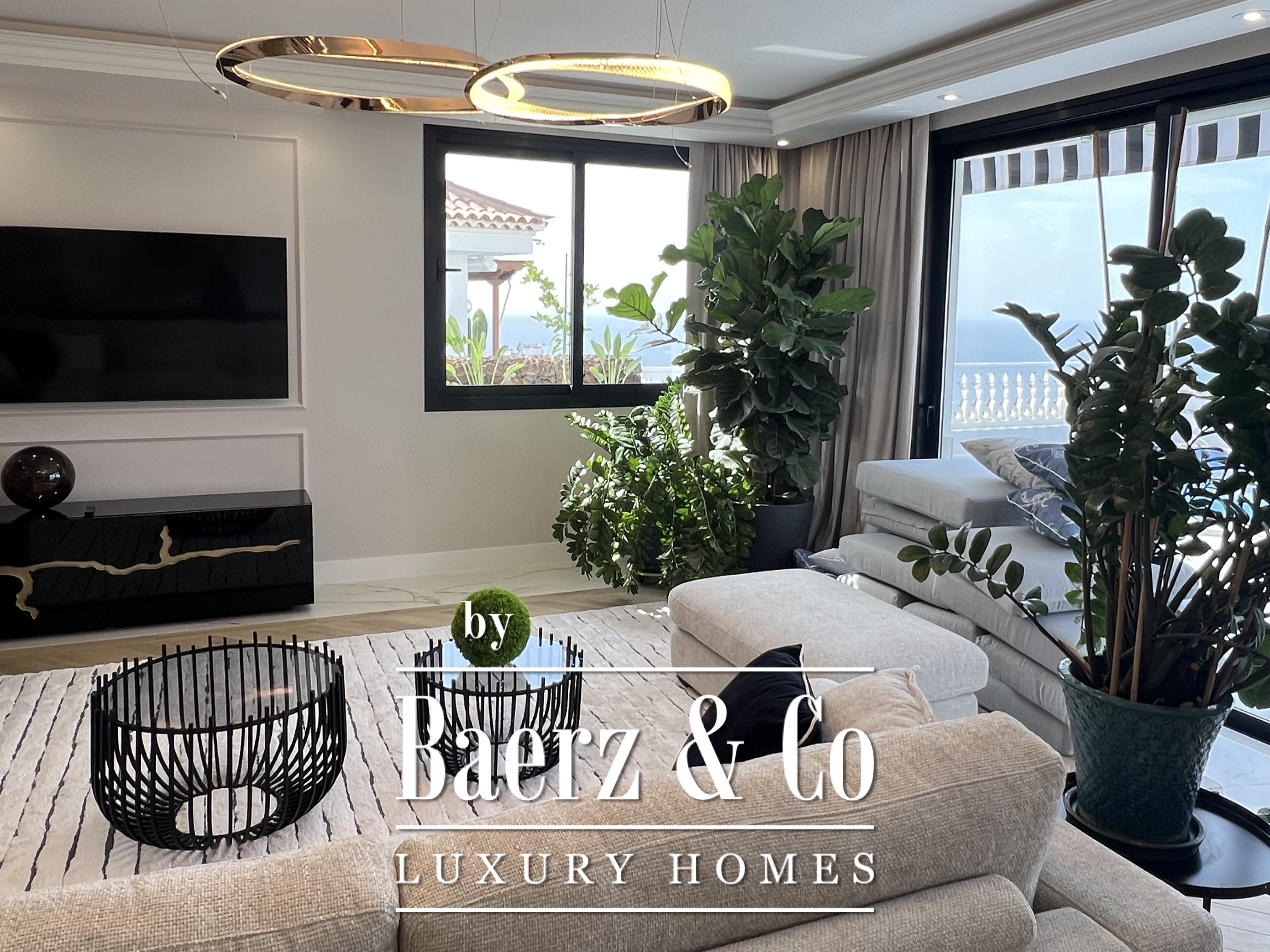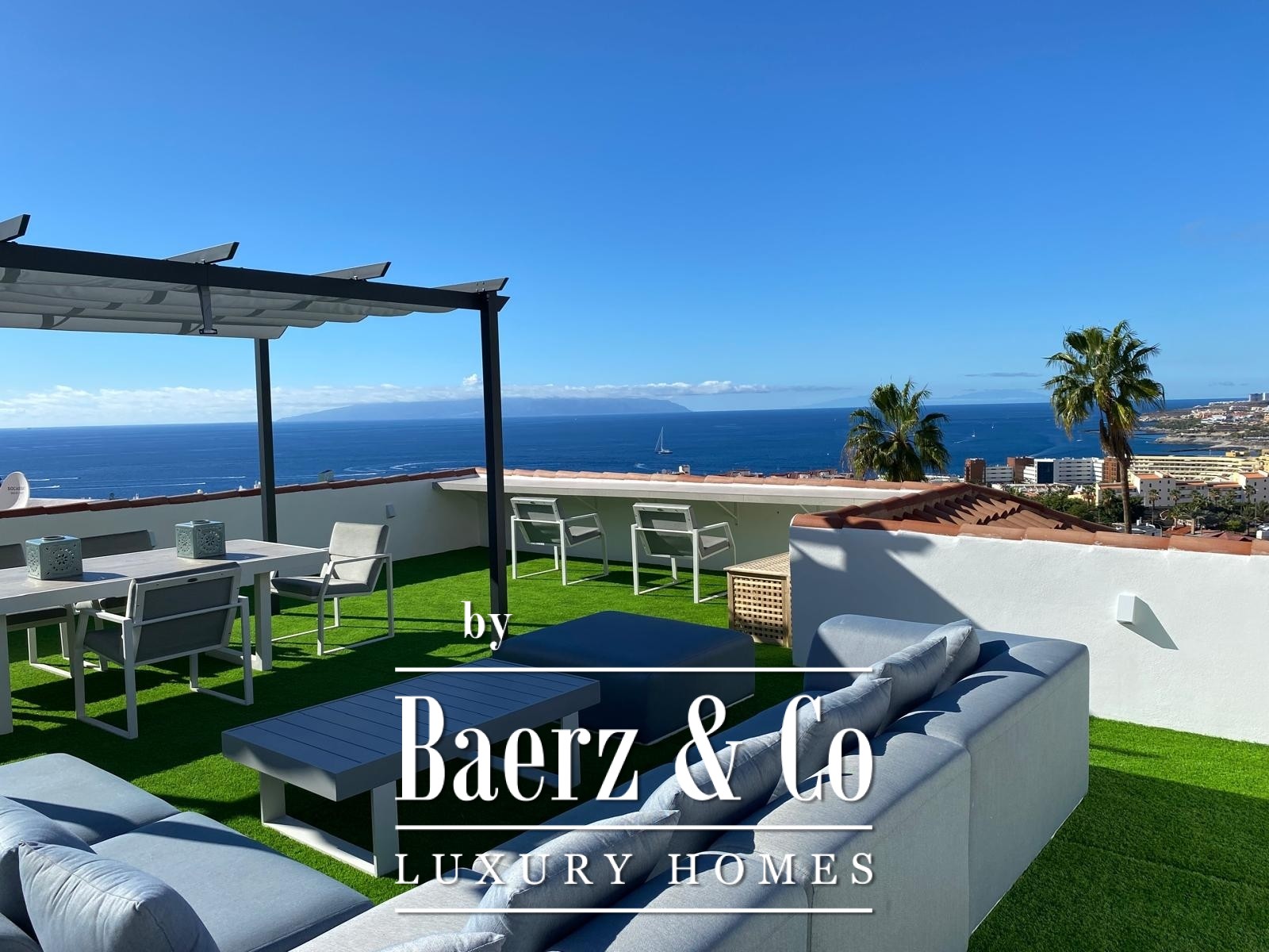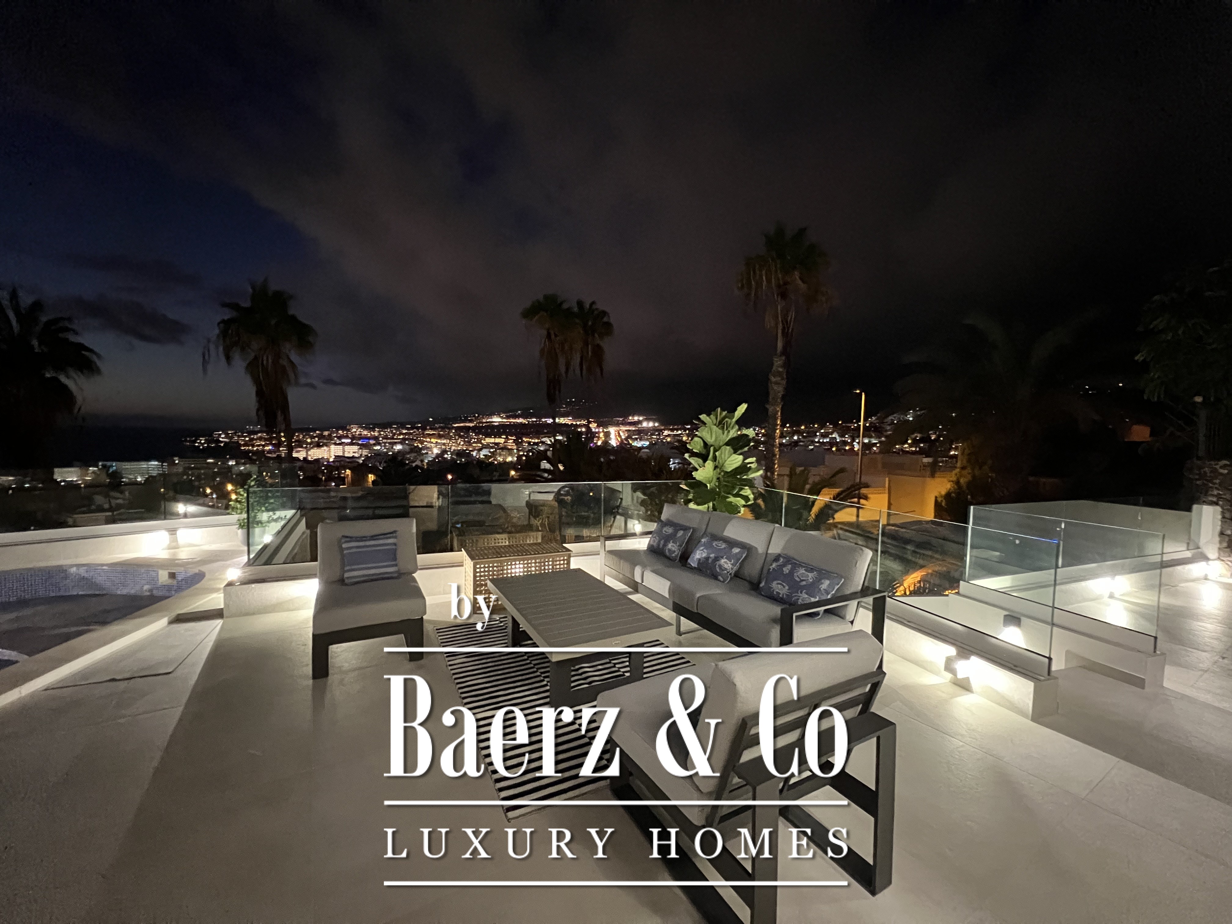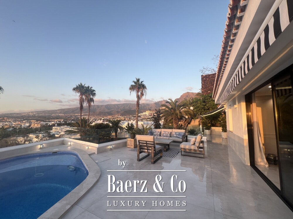 In de geliefde urbanisatie San Eugenio vind je deze ruime en lichte woning met 2 verdiepingen, waarbij de belangrijkste leefruimte en slaapkamers allemaal op één niveau liggen. Er zijn 3 ruime slaapkamers, waarvan één met toegang tot een overdekt terras aan de voorzijde van de villa, 3 badkamers en 1 gastentoilet. De woonkamer is zeer groot en komt uit op het grote terras van 144 m2 met privézwembad en prachtig uitzicht op de oceaan, het eiland La Gomera en de kustlijn.