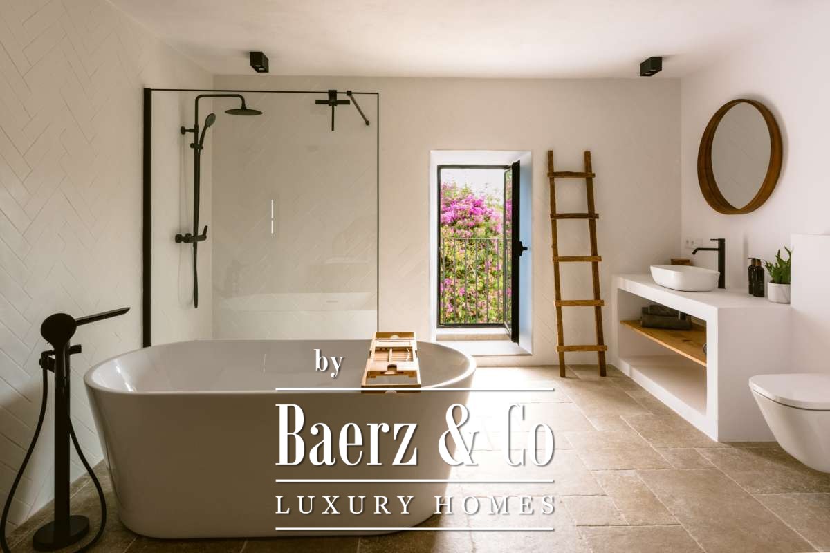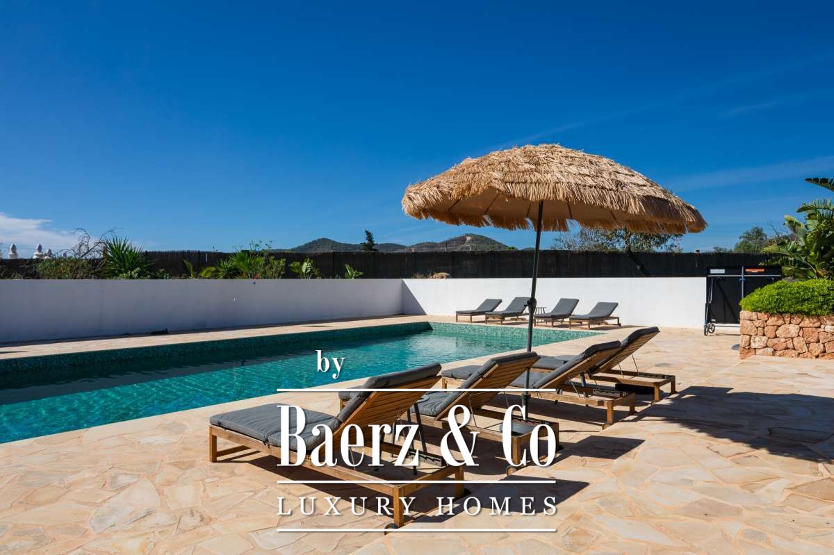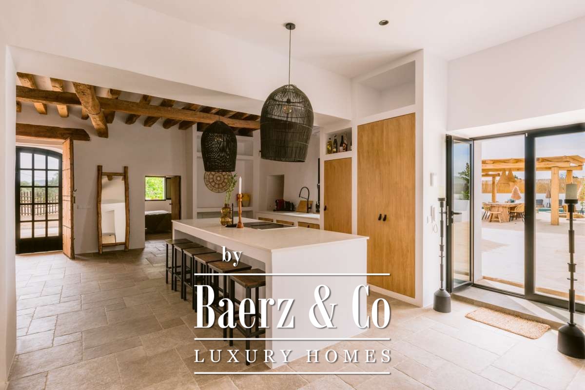 De omgevingDit uitzonderlijke pand is genesteld in het hart van Sant Jordi, Ibiza, en biedt een unieke locatie op slechts 3 minuten rijden van de luchthaven en op 10 minuten rijden van de bruisende Ibiza-stad. Bovendien vindt u binnen 10 minuten rijden ook de befaamdste kust pareltjes van het eiland, waaronder Las Salinas, Sa Caleta, Cala Jondal en de exclusieve Blue Marlin Beach Club. Deze prachtige stranden en hotspots liggen vlakbij deze woning, in het hart van de bruisende levensstijl van het eiland. Dit is een perfecte locatie voor wie op zoek is naar privacy en toch graag dicht bij het centrum wilt wonen. Deze residentie biedt een harmonieuze mix van sereniteit en goede bereikbaarheid.De villaDeze prachtige villa, gerenoveerd in 2023 met hoogwaardige materialen, straalt een unieke bohemian chique stijl uit. Bij binnenkomst wordt u verwelkomd door de open woon- en eetkamer, die over verschillende vloerniveaus beschikt. Deze lopen naadloos in elkaar over en zorgen direct voor een uitnodigende en knusse sfeer. De finca is voorzien van een compleet uitgeruste design keuken met moderne apparatuur. Ook is elk detail van het huis zorgvuldig uitgekozen en de nieuwe moderne stijl sluit feilloos aan bij de authentieke Ibicencan charme. De hoofdwoning bestaat uit 5 ruime, prachtige slaapkamers, elk met een ensuite badkamer die voorzien is van luxe regendouches. De master bedroom beschikt ook over een comfortabel ligbad. Daarnaast is er een charmant gastenverblijf, de "casita", bestaande uit een volledig uitgeruste open woon-eetkamer, twee slaapkamers en een gedeelde badkamer. De casita bevindt zich ongeveer 50 meter voor de hoofdwoning, waardoor u verzekerd bent van optimale privacy en het een ideale ruimte biedt voor verhuur of het ontvangen van gasten. Zowel het hoofdhuis als de casita zijn voorzien van vloerverwarming en airconditioning in iedere ruimte, zodat u het hele jaar door kunt genieten van een aangename temperatuur. Beide residenties bieden glasvezel high-speed internet en zijn uitgerust met moderne alarmsystemen, die zorgen voor een perfecte verbinding en optimale veiligheid. Bovendien is alle inventaris bij deze prachtige finca inbegrepen, wat het tot een sleutelklaar en direct te betrekken eigendom maakt.De buitenruimtesWanneer u de tuin binnenstapt, vindt u verschillende ruime terrassen, een schitterend beschaduwde al fresco eethoek en een zonovergoten zwembad van ruim 90m², vergezeld van comfortabele ligbedden. De moderne omheining biedt de privacy die u wenst, terwijl de luxueuze Ibicenco sfeer wordt geaccentueerd door het wit geschilderde pand en de houten tuinmeubelen en decoraties. Het ruime land dat zich uitstrekt tussen het hoofdverblijf en het gastenverblijf is ideaal voor landscaping en omringt beide huizen. In de tuin van het hoofdverblijf staat een originele monumentale Ibicencan toren, die een historisch tintje geeft aan dit prachtige eigendom. Een ander bijzonder detail is het lichtontwerp van de tuinen. Het pad naar de casita heeft bijvoorbeeld discrete lichtspots op de grond, die u de weg wijzen naar dit aparte verblijf. Deze woning biedt de traditionele Ibiza allure in combinatie met een modern luxe lifestyle.