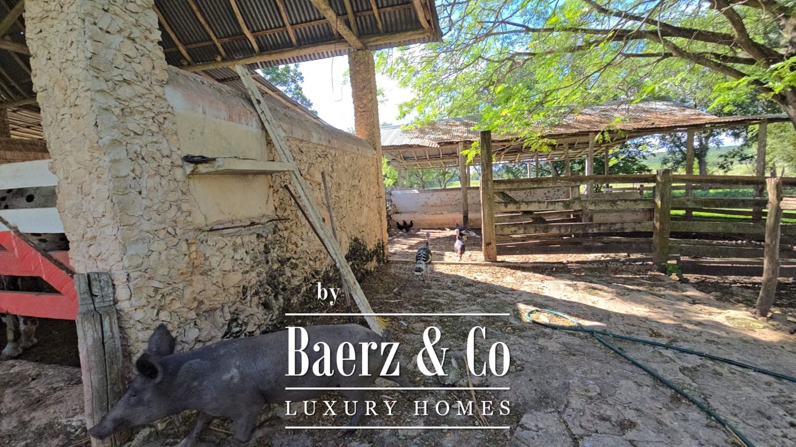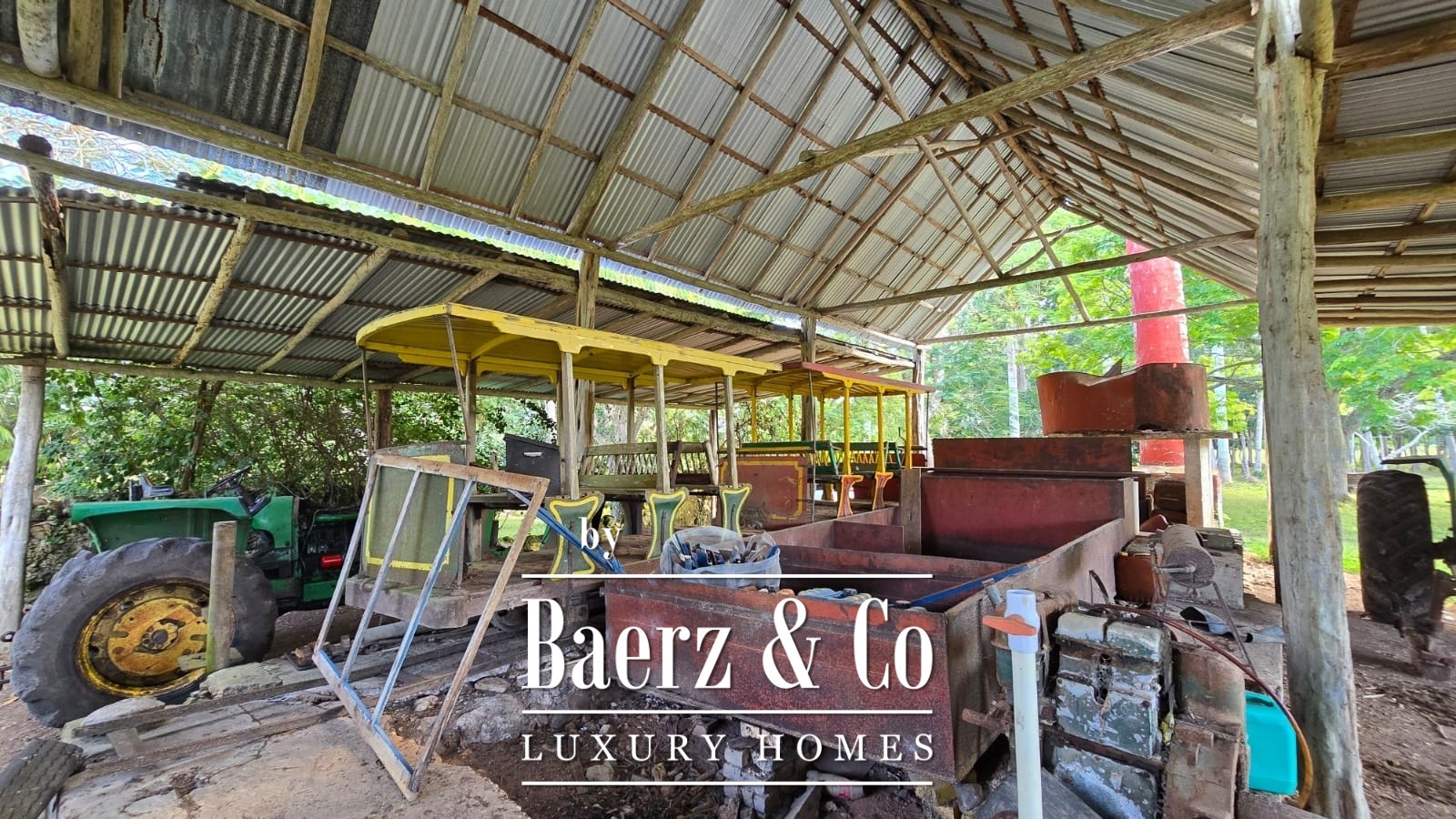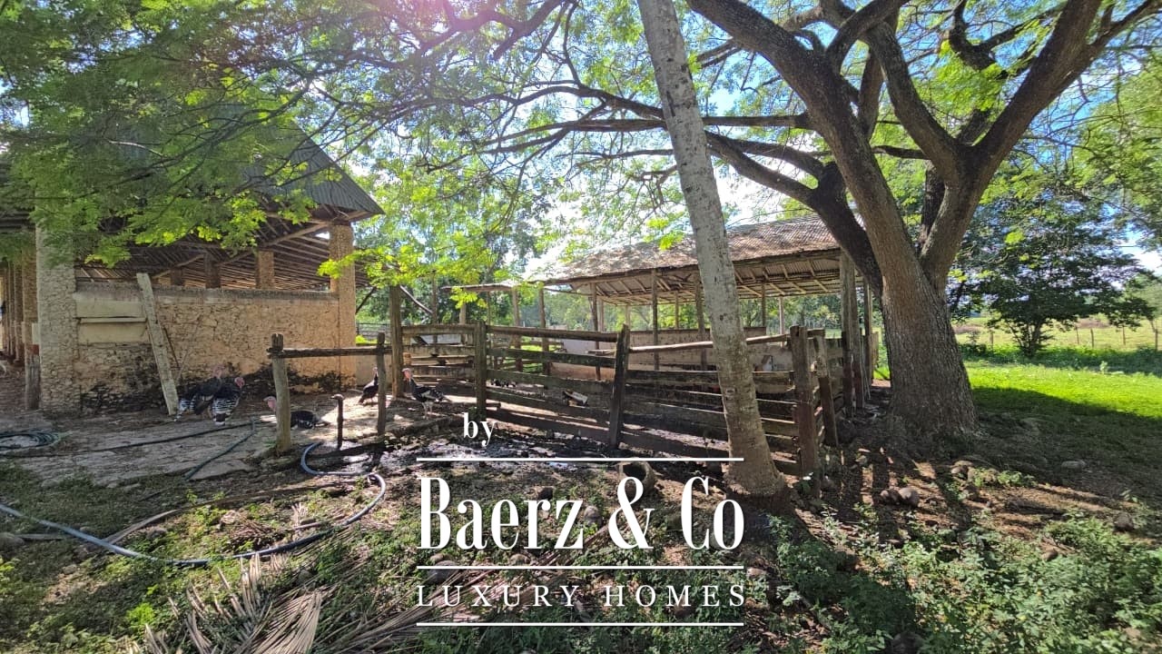 Directe toegang via een brede, door de overheid onderhouden weg zorgt voor vlotte verbinding tussen de primaire en secundaire percelen. Het hoofdcomplex van de haciënda beslaat circa 650 vierkante meter, met een residentie voorzien van royale woon- en eetvertrekken, een traditionele keuken, vijf slaapkamers en drie badkamers. Aanvullende gebouwen omvatten een tweede arbeiderswoning, dienstvertrekken, diverse opslagloodsen en machinestallen; alles is ingericht voor duurzame exploitatie en het ontvangen van de gemeenschap.