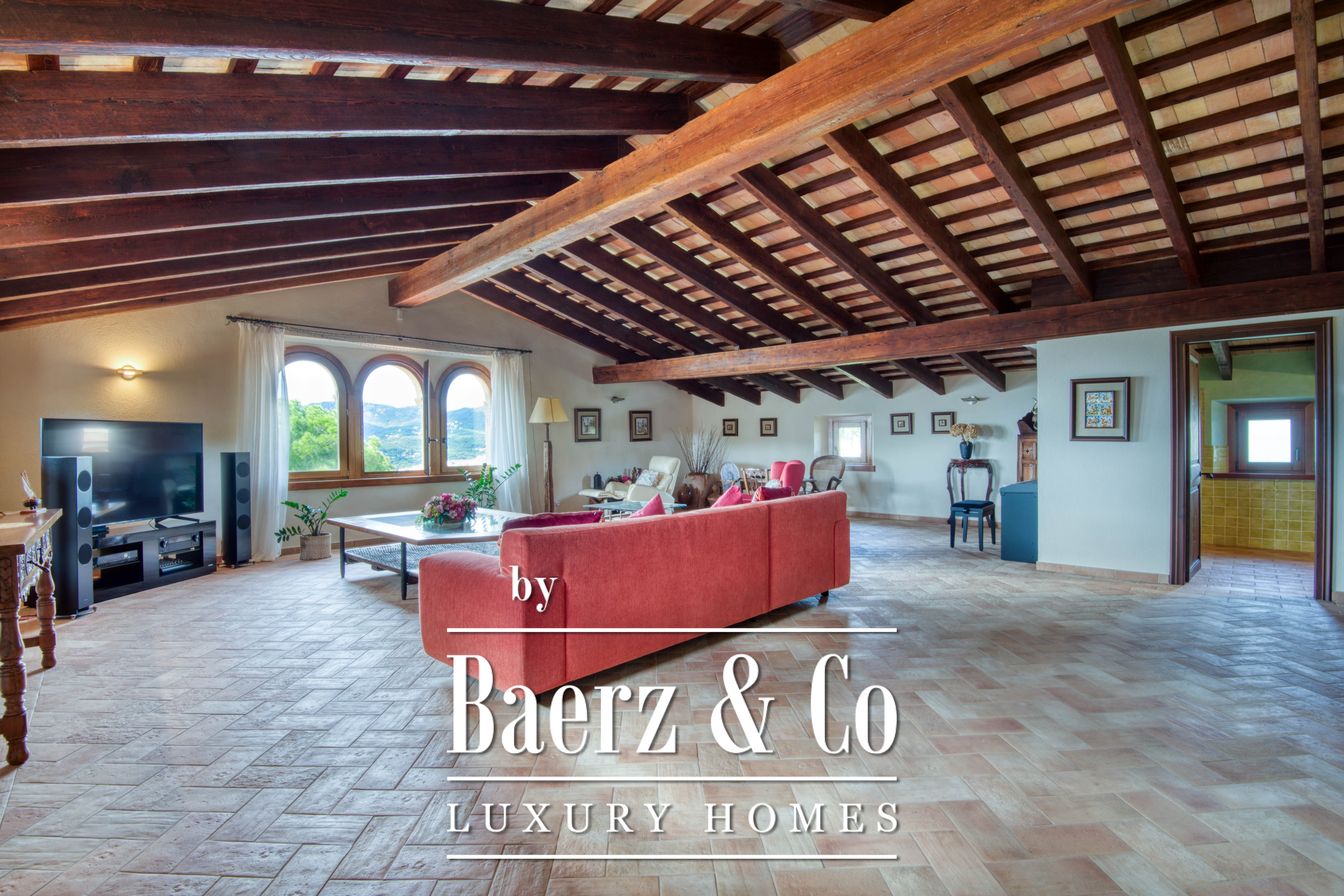 Binnen zorgen zes slaapkamers en vier badkamers voor ingetogen luxe voor familie en gasten. De aparte keuken heeft directe toegang tot de leefruimtes, terwijl een ruime en lichte woonkamer doorloopt naar de terrassen, waar zonsopkomsten en zonsondergangen zich aftekenen boven de kustlijn. Buiten nodigen de privé tuin en het zwembad uit tot ongedwongen zomerdagen, aangevuld met een barbecue, open haard en royale loungegedeelten. Het comfort wordt verder versterkt door verwarming, airconditioning, een afgesloten garage en ruime parkeergelegenheid op eigen terrein.