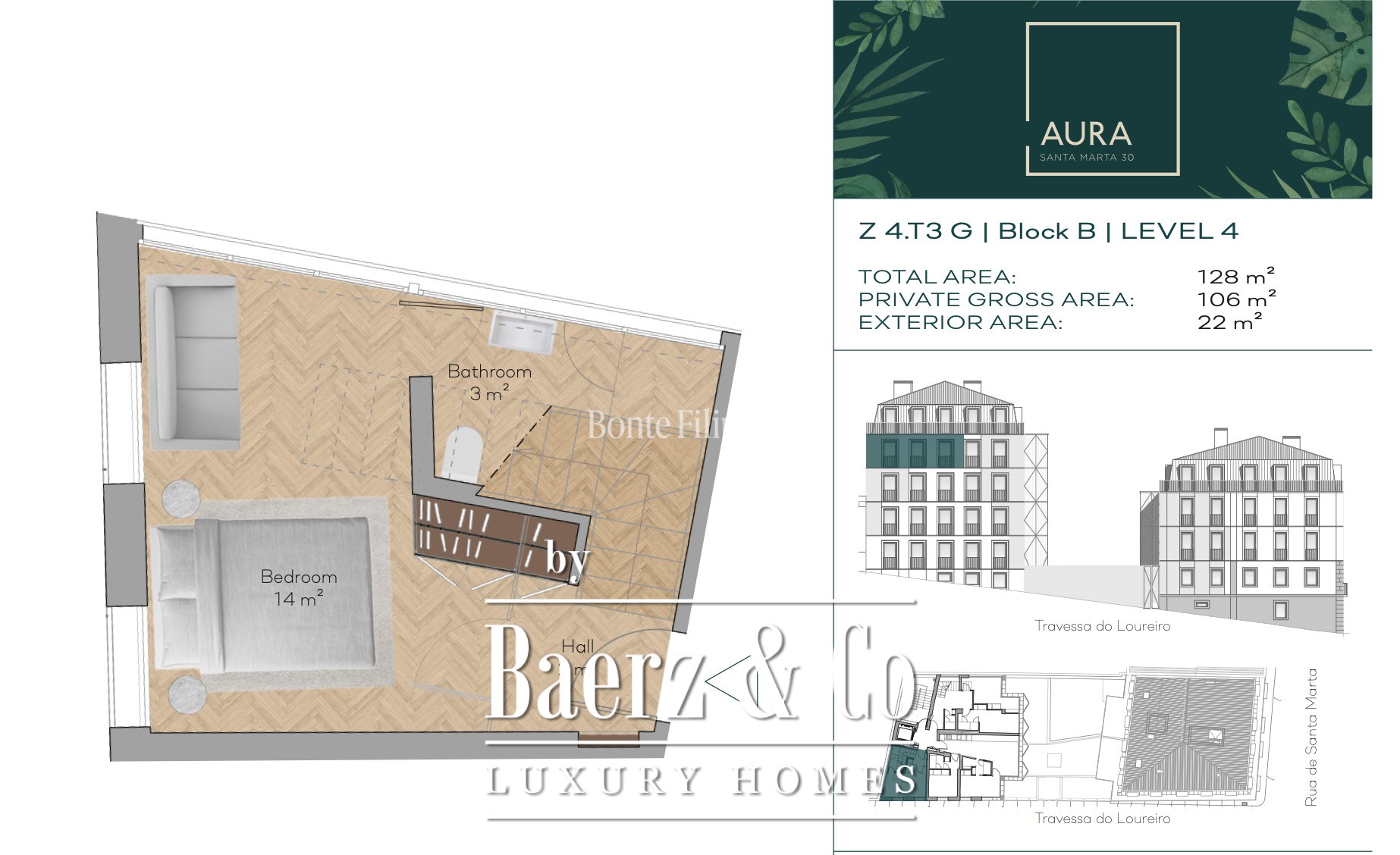 Het architecturale karakter van Aura is eigentijds en tegelijkertijd geworteld, omringd door zorgvuldig aangelegde tuinen en groene zones die zeldzaam zijn in het centrum van de stad. Bewoners genieten er van de rust van een privé-tuin van 180 m², een zwembad, een eigen fitnessruimte en beveiligde ondergrondse parkeergelegenheid. Zonne-energie draagt subtiel bij aan het duurzaamheidskarakter. Elk detail van het condominium is ingericht op discretie, comfort en welzijn en biedt een beschermde enclave boven het bruisende tempo van Lissabon.