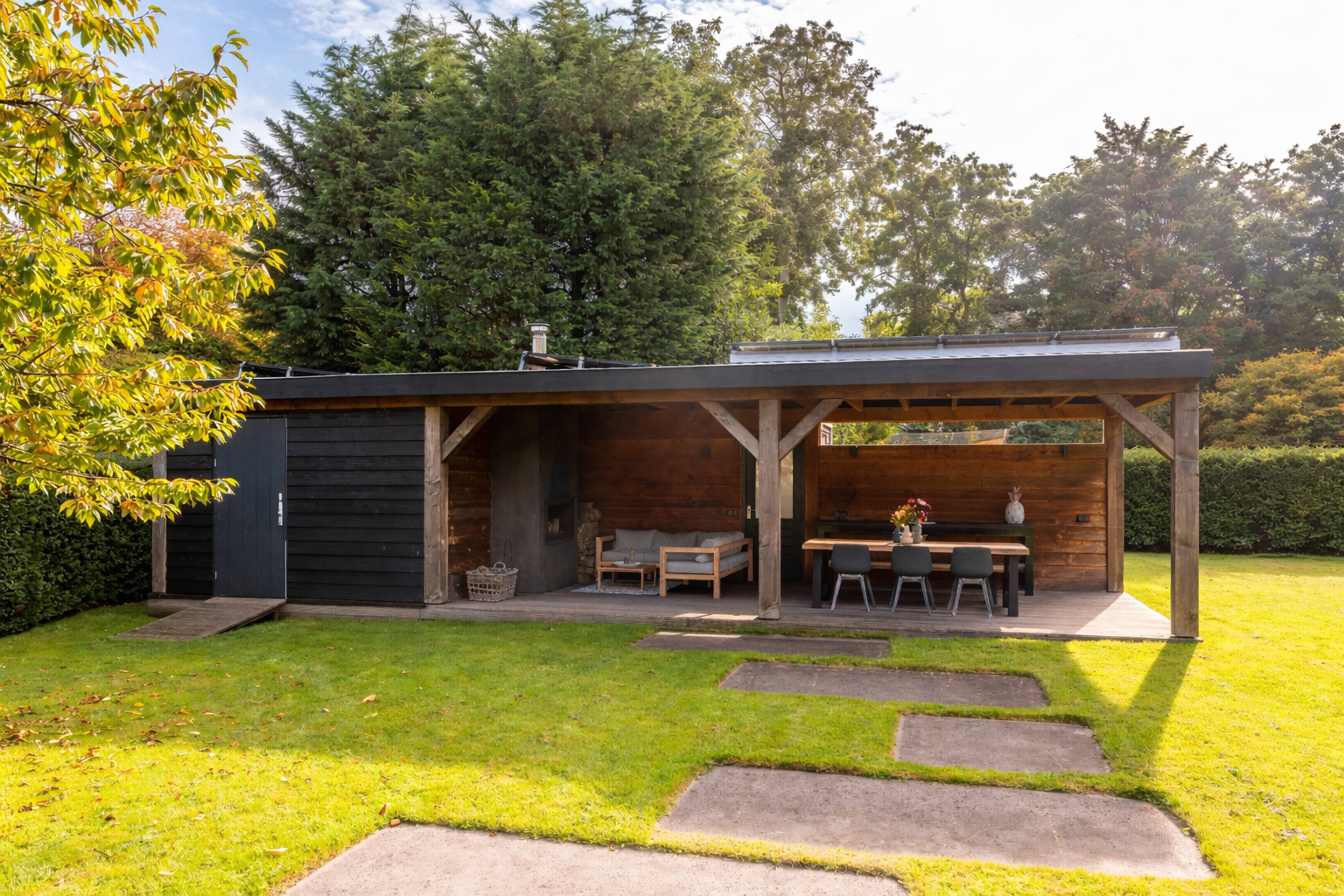 De achtertuin is erg ruim en verzorgd aangelegd. Er is een fijne veranda met houtkachel, zitruimte, veel bergruimte, elektra, verlichting en (koud) water. Ook bevindt zich in de tuin een royaal kippenhok dat blijft staan.