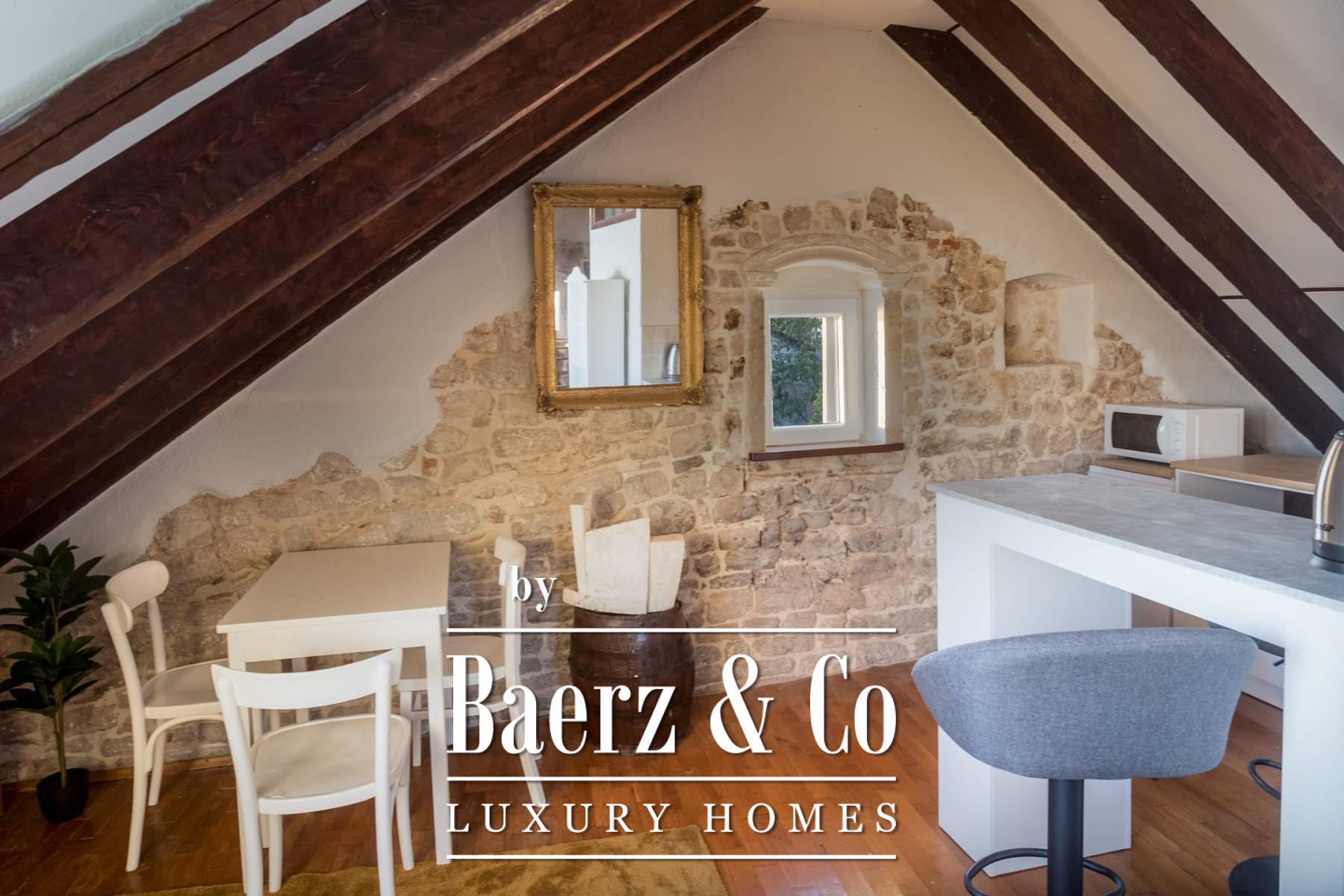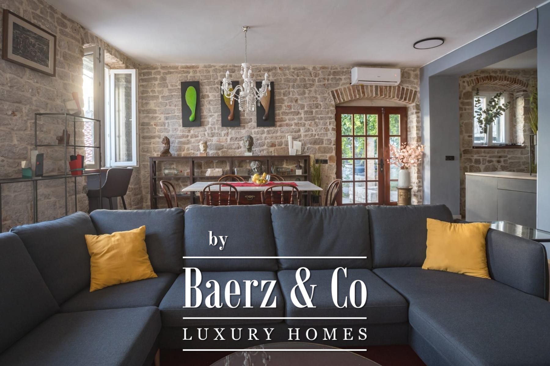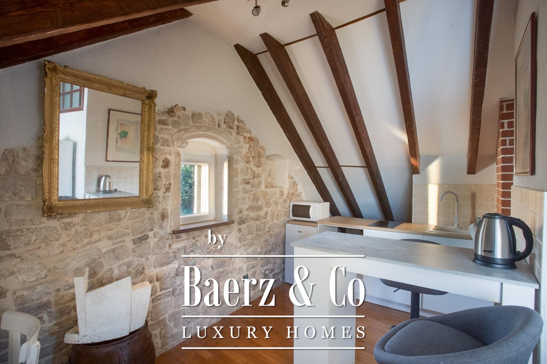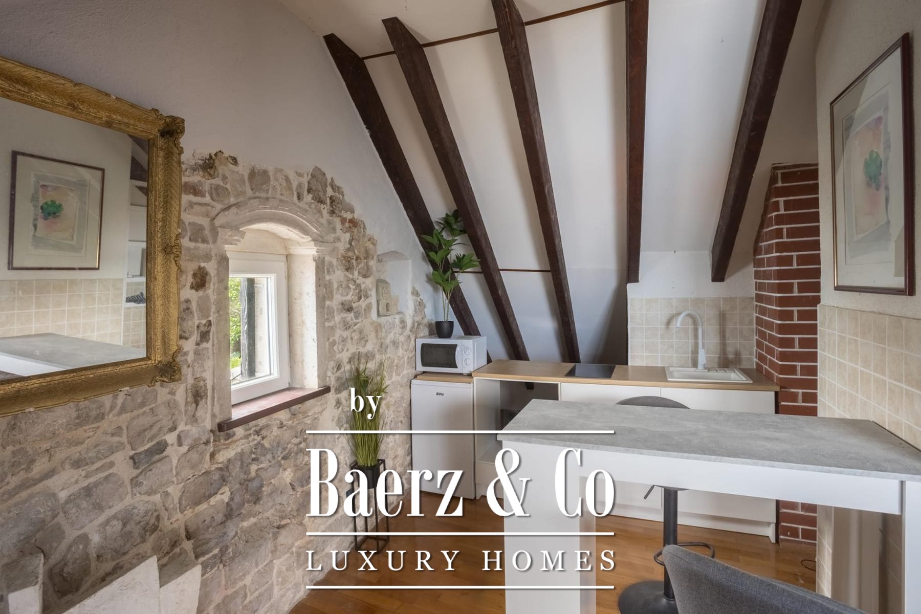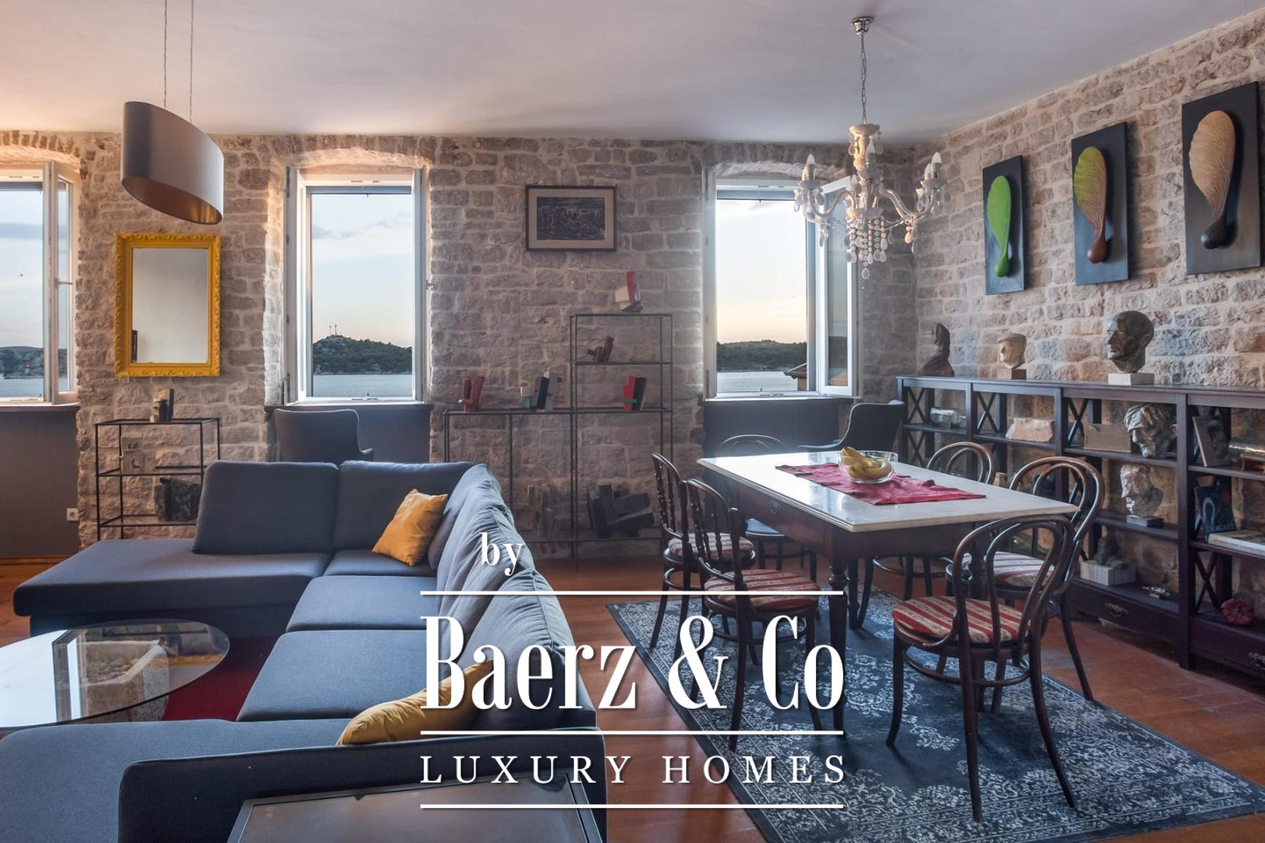 Originele gotische elementen zoals het stenen portaal, de friesversieringen en een dertiende-eeuws reliëf van Sint-Michaël verankeren de historische sfeer. Volgens de overlevering is de woning verbonden aan Juraj Dalmatinac, bouwmeester van de kathedraal van Šibenik. De ommuurde privétuin, uitzonderlijk ruim met 144 m², is de grootste bij een woning in de oude stad en verzekert een weldadige beslotenheid in het centrum. Rust en privacy zijn hier het hele jaar door gegarandeerd, wat de zeldzame kwaliteit van dit paleis onderstreept voor wie een verfijnd adres in Šibenik zoekt. Het unieke erfgoed, het ruimtelijke ritme en de ligging tussen zee en kathedraal maken het tot een bijzonder historisch woonhuis in de regio.