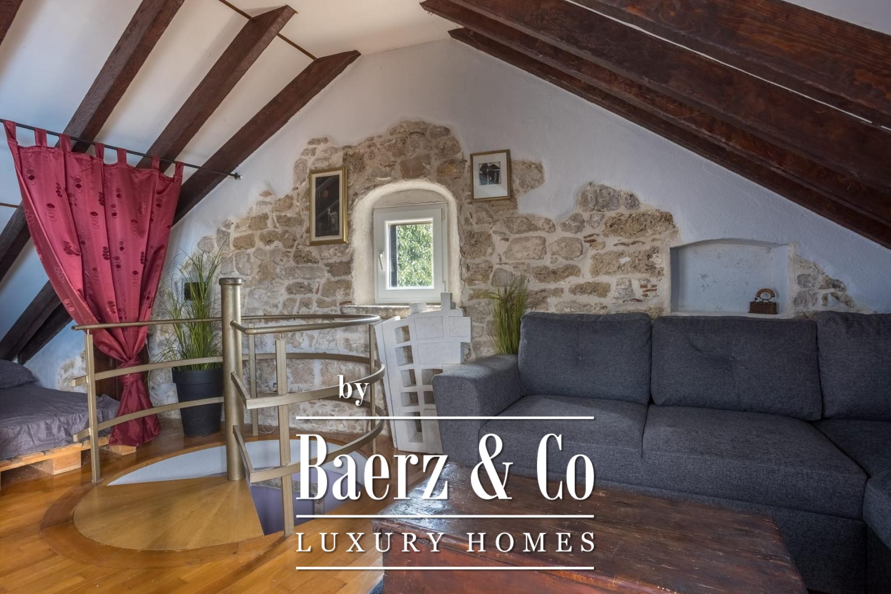 Dit historische paleis in de oude binnenstad van Šibenik ligt rustig in een van de oudste straten van de stad, op korte loopafstand van zee en de Sint-Jacobuskathedraal. Het pand beslaat 202 m², verdeeld over drie verdiepingen en een volledig afgewerkte zolder, zorgvuldig gerenoveerd om de twaalfde-eeuwse oorsprong te eren en tegelijkertijd een modern en comfortabel woongevoel te bieden. Op de begane grond geeft een authentieke wijnkelder het huis zijn karakteristieke uitstraling. De eerste verdieping omvat een keuken, eet- en woonkamer, een gastentoilet en een voorraadkamer, terwijl de tweede verdieping drie slaapkamers en een badkamer herbergt. De zelfstandige suite op zolder—voorzien van eigen keuken, woonkamer, slaapkamer en badkamer—biedt flexibiliteit voor gasten of als gewilde toeristische verhuur.