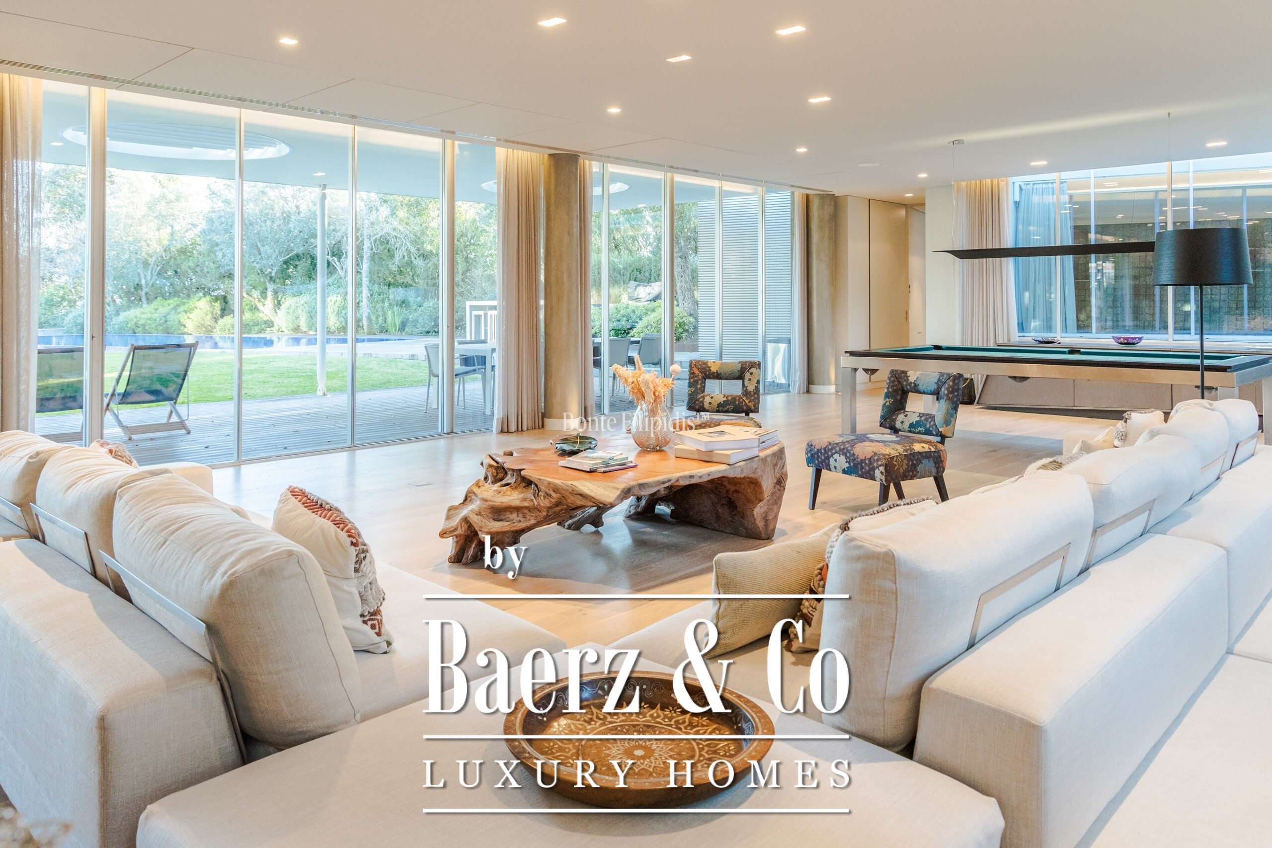 Villa Quinta da Beloura Sintra is een buitengewoon fraai landgoed, discreet gelegen in een van de meest begeerde beveiligde communities nabij Lissabon. Verspreid over 943 m² en verdeeld over drie verfijnde woonlagen, rust de villa op een besloten perceel van 4.813 m². Hier komen privacy, verbondenheid en comfort samen. Een interne lift verbindt alle etages, waardoor dagelijkse momenten en bijzondere gelegenheden moeiteloos in elkaar overvloeien.