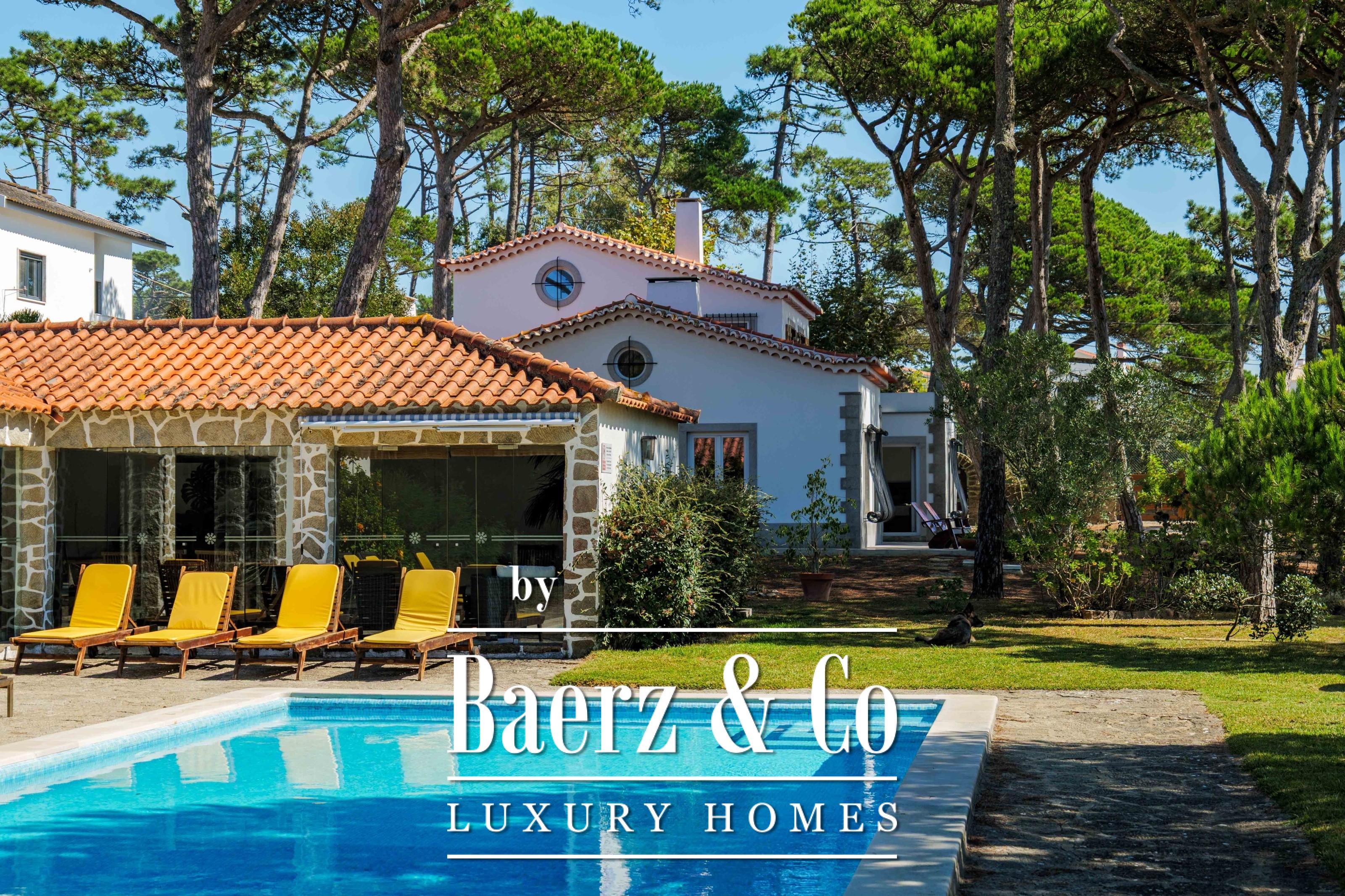 Villa Sintra met tuin en zeezicht combineert Portugese architectuur uit de twintigste eeuw met hedendaagse verfijning. Gelegen op een perceel van 2.341 m² fraai aangelegde tuinen, op slechts vijf minuten van Praia do Magoito, worden het hoofdverblijf en het gastenverblijf omgeven door volgroeide pijnbomen onder een uitgestrekte hemel.