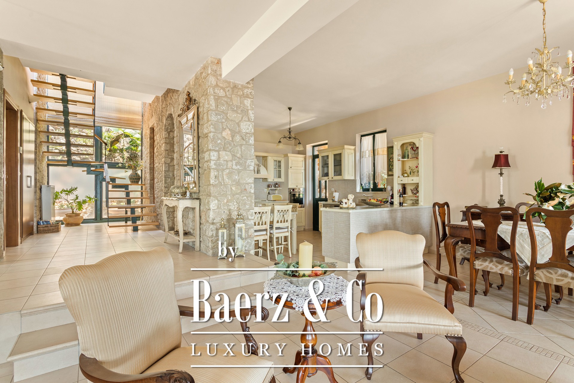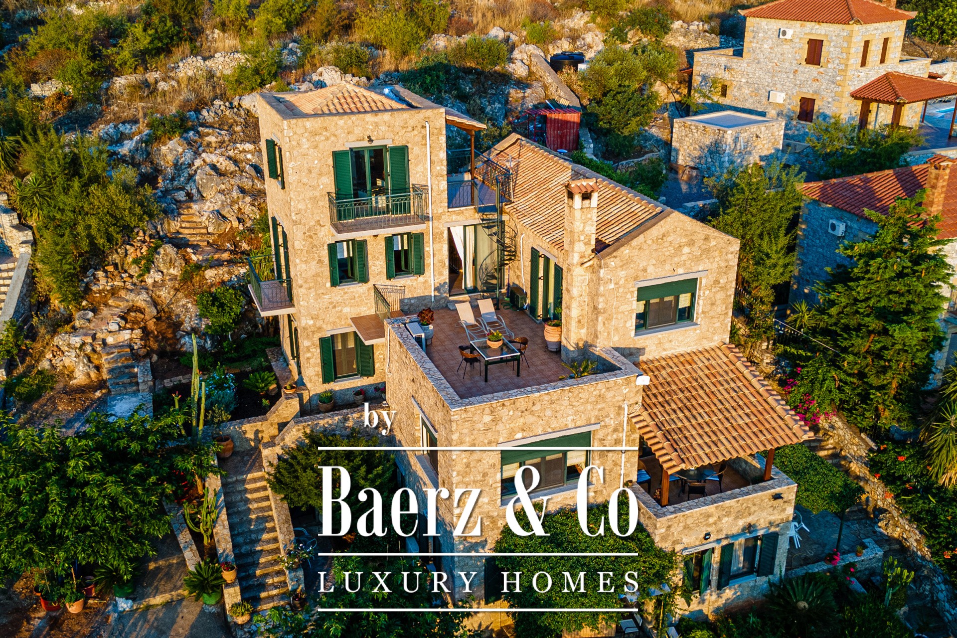 Vrijstaande woning in Stoupa, gesitueerd in het karakteristieke landschap van Messinian Mani, vormt een zeldzame samensmelting van regionale steenarchitectuur en hedendaags wooncomfort over meer dan 300 m². Gelegen op een westelijk georiënteerd perceel van 1.000 m² benut de villa optimaal het eindeloze zeezicht en stroomt het daglicht binnen op elk niveau. Verspreid over vier verdiepingen biedt deze woning doordachte leefruimtes: het entree-niveau omvat twee zelfstandige appartementen, ideaal voor gasten of verhuur gericht op privacy. Het hoofdbewoonvertrek draait om een uitnodigende open haard, een eetkamer in open verbinding en een open keuken, uitmondend in twee terrassen met een panoramisch onbelemmerd uitzicht op zee.